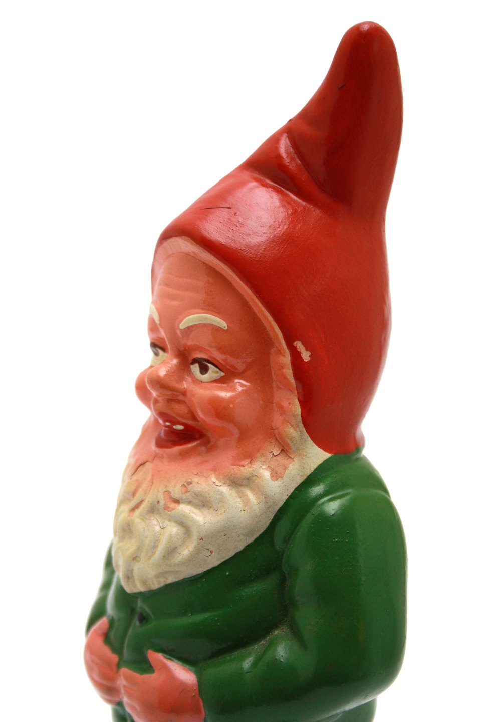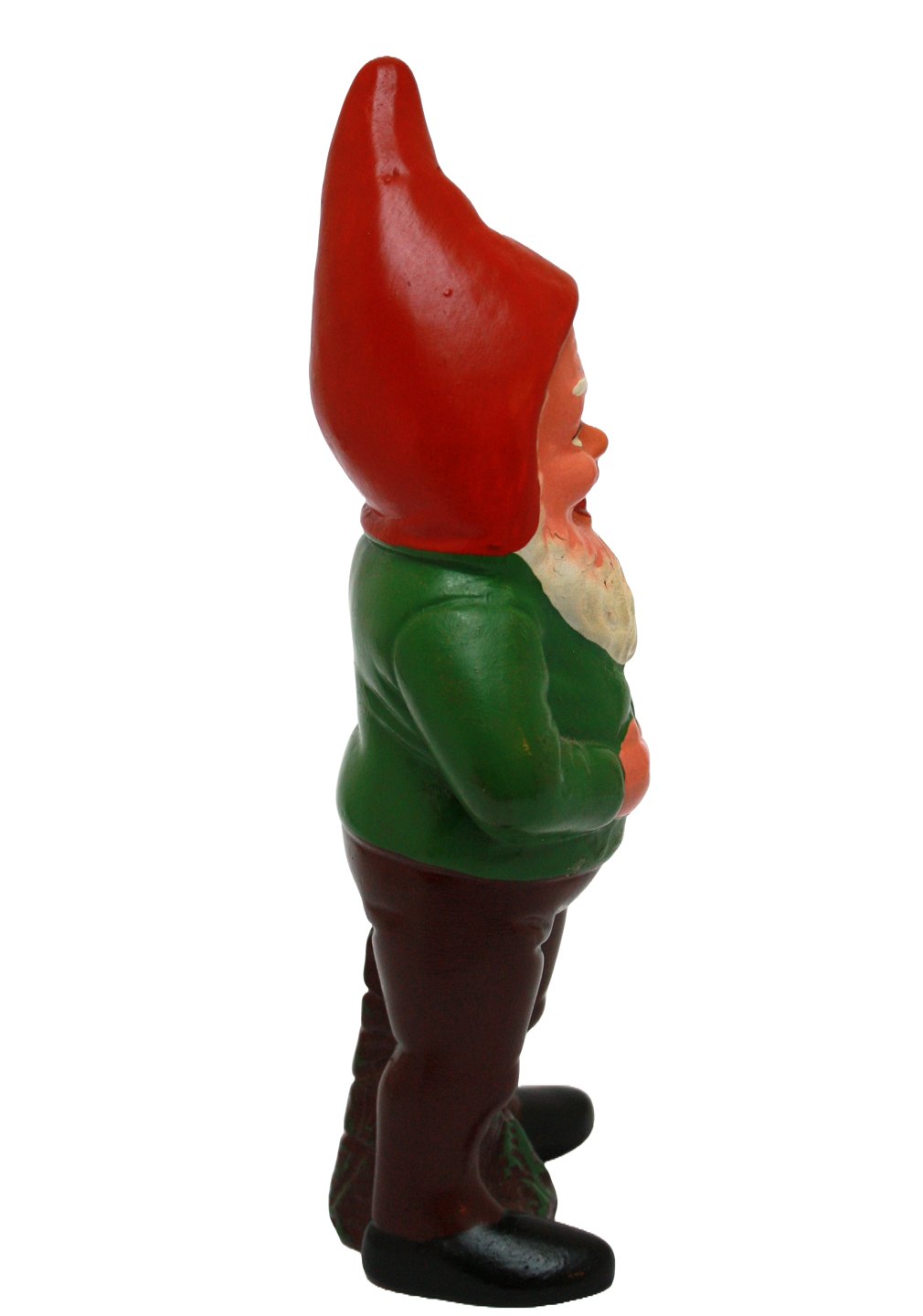 Fra Tyskland, Bemalet terracotta nisse stående. Fra 1950'erne. Højde 25,5 cm. Flot stand med lille glasurafskalning på huen. Pris: 700 kr.