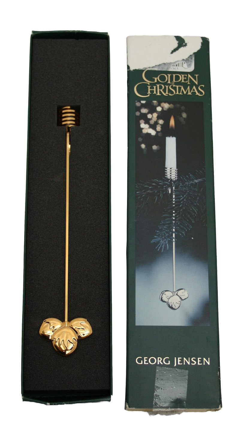 Georg Jensen, Golden Christmas, Lyseholder forgyldt. Design Andreas Mikkelsen. 2002 Hasselnød. Med originalæske. Pris: SOLGT