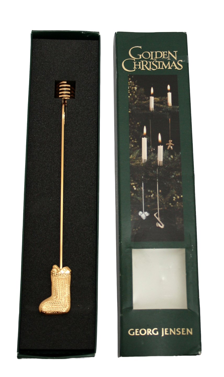 Georg Jensen, Golden Christmas, Lyseholder forgyldt. Design Andreas Mikkelsen. 2003 Julesok. Med originalæske. Pris: SOLGT