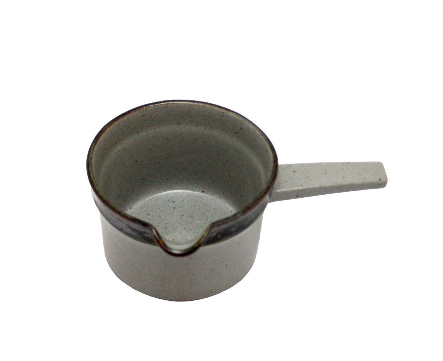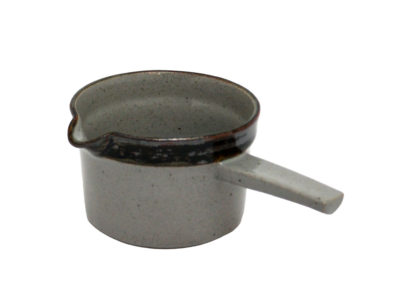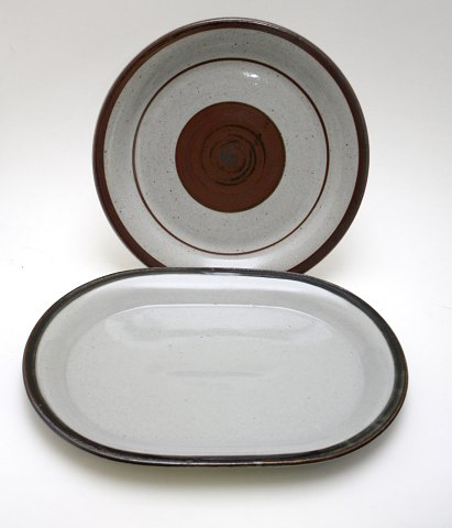 Knabstrup, Ingrid stentøjsstel grå glasur med brun kant. Designet af den tyske kunstner Christine Konschak, som var tilknyttet Knabstrup i perioden 1967-1970.