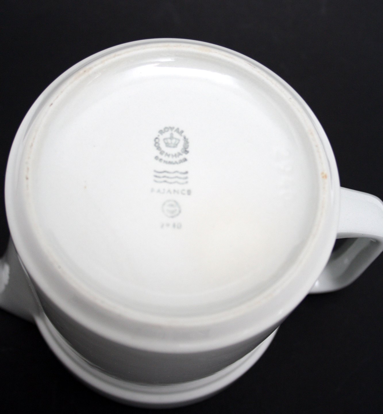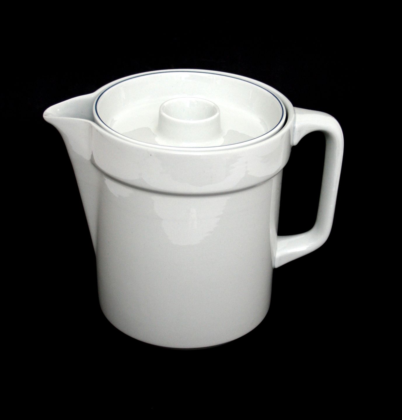 Royal Copenhagen fajance, Blåkant, tidligere produceret under Aluminia. Designet af Grethe Meyer i 1965. Kaffekande. Nr. 2940. Højde 14 cm. Diameter 12 cm. Længde 18 cm. Fin og hel stand med brændingsplet. Pris: SOLGT