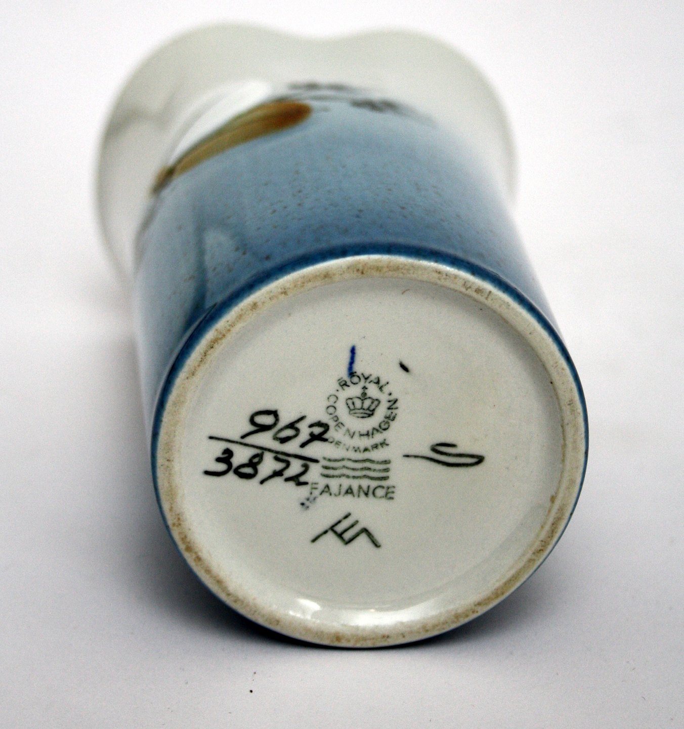 Royal Copenhagen Celeste lyseblå porcelæn med blomstermotiv. Designet af Ellen Malmer. Vase. Nr. 967/3872. Bredde 9 cm. Højde 13,5 cm. II. sortering. Pris: 275 kr.