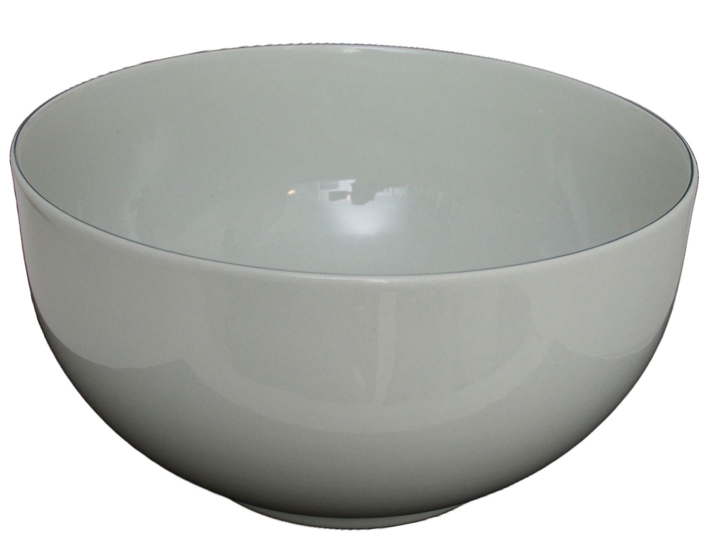 Royal Copenhagen fajance, Blåkant tidligere produceret under Aluminia. Designet af Grethe Meyer i 1965. Stor salatskål nr. 3049. Højde 15,5 cm. Diameter 29 cm. II. sortering med brændingsplet, ellers flot stand. Pris: 1400 kr.