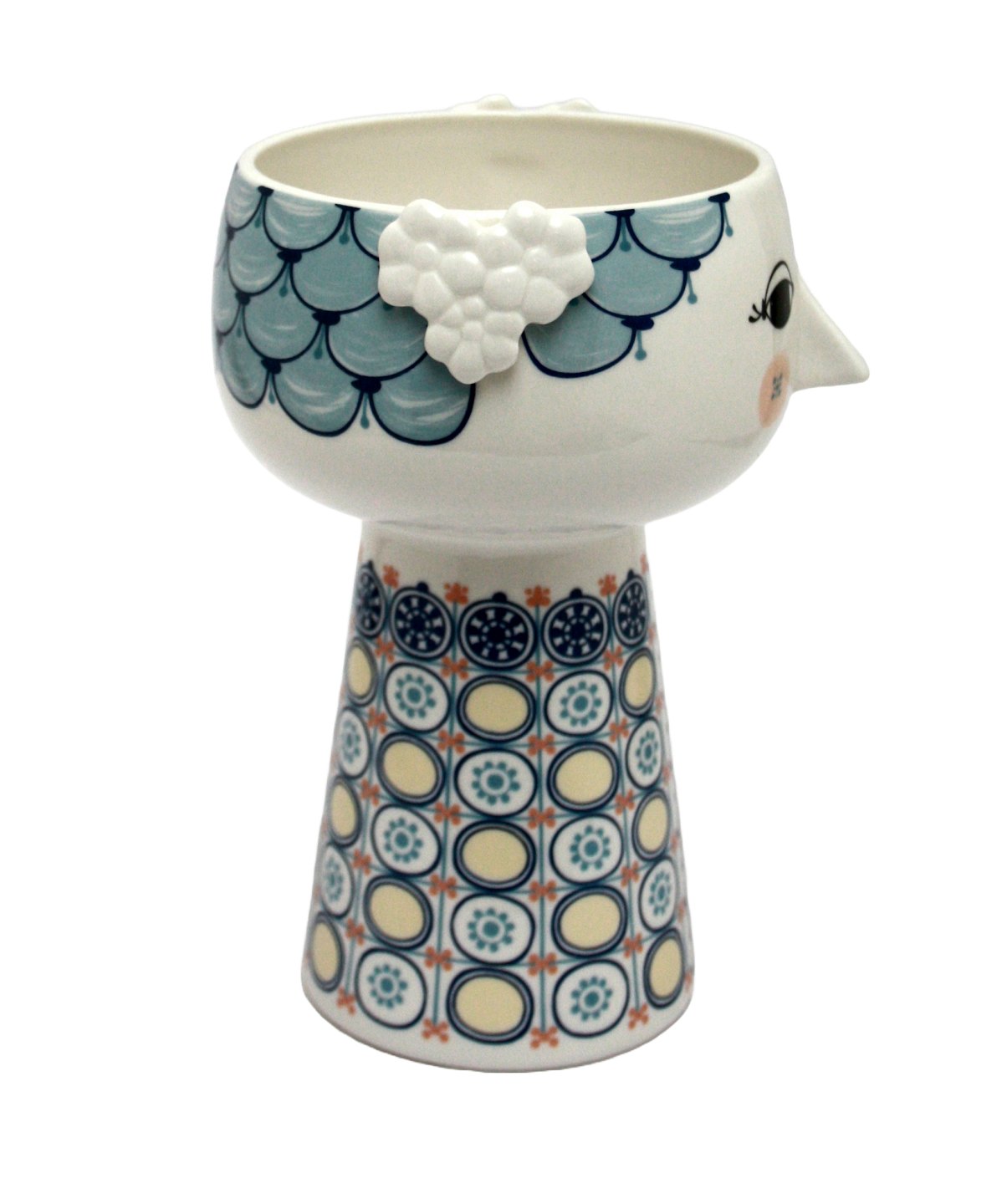 Bjørn Wiinblad, Eva vase i blå. Højde 18,5 cm. Diameter i skål 11 cm. Nyproduceret. Pris: SOLGT
