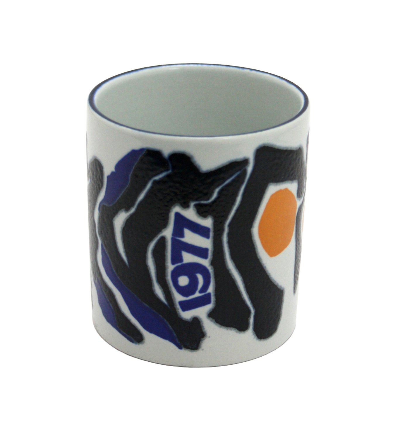 Royal Copenhagen, Lille årskrus 1977. Designer Inge Lise Kofoed. Nr. 3495. Årskrus er produceret fra 1967 til 2014. Højde 7,5 cm. Diameter 6,5 cm. Pris: 125 kr. stk. Lager: 3
