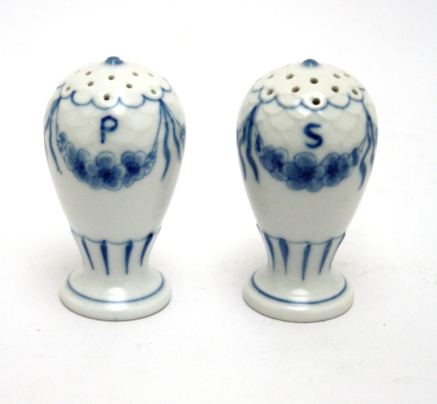 Bing og Grøndahl, Empire. Saltbøsse og Pebersæt med malet S og P med B&G gummiprop. Højde 7,5 cm. Pris: SOLGT
