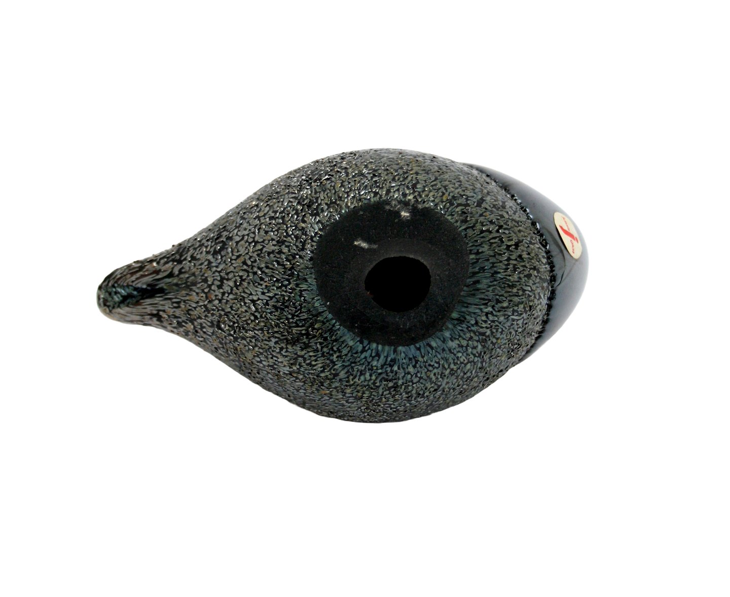 Fugl i sort og sølv designet af Jussi Riihimäki, Finland. Højde 10 cm. Længde 13 cm. Materialet er glas med en tung metallegering udenpå. Pris: 450 kr.