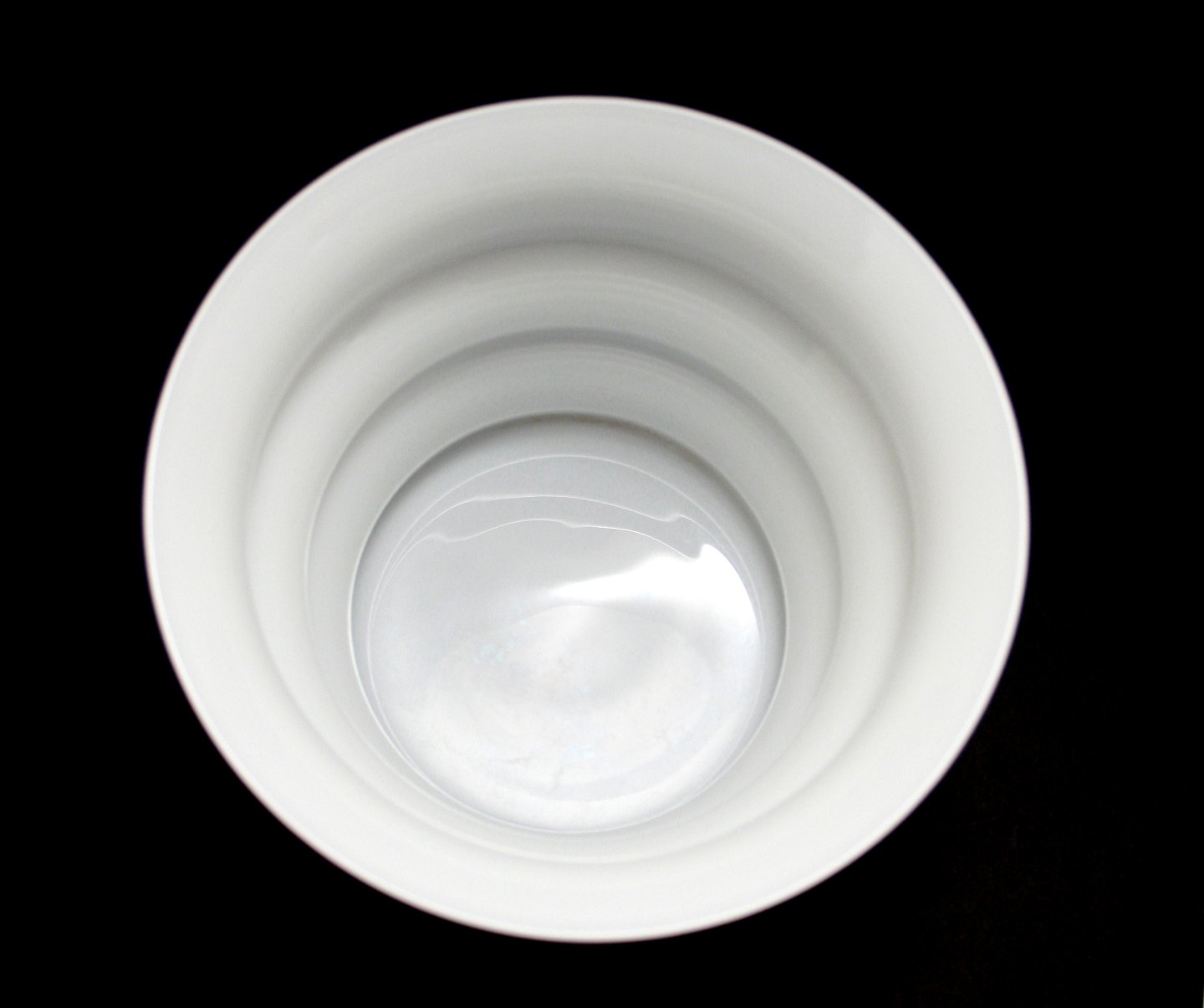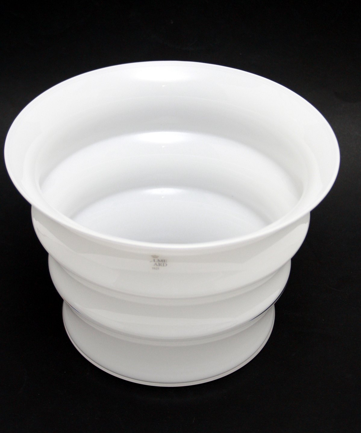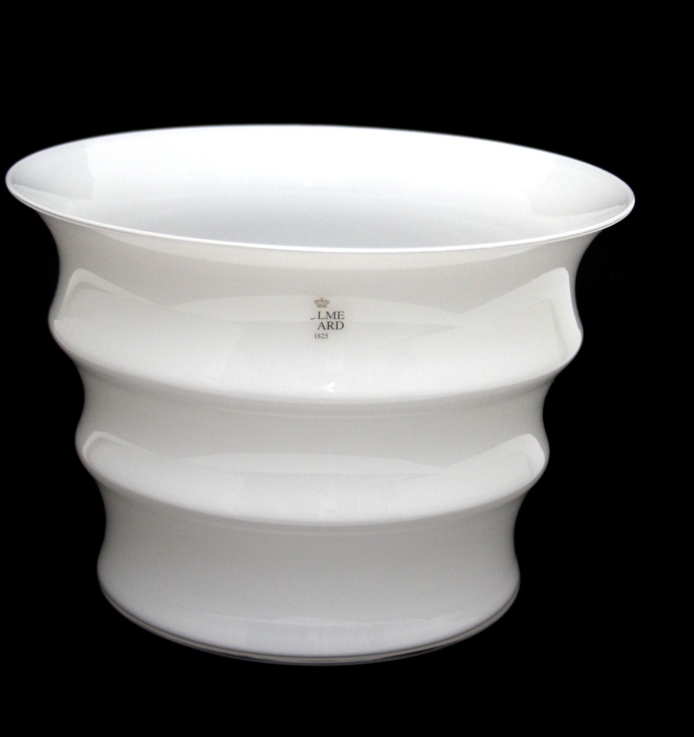 Holmegaard, Karen Blixen stor urtepotteskjuler i opalhvid. Designet af Anja Kjær fra 2000. Højde 14,5 cm. Diameter 20,5 cm. Pris: SOLGT