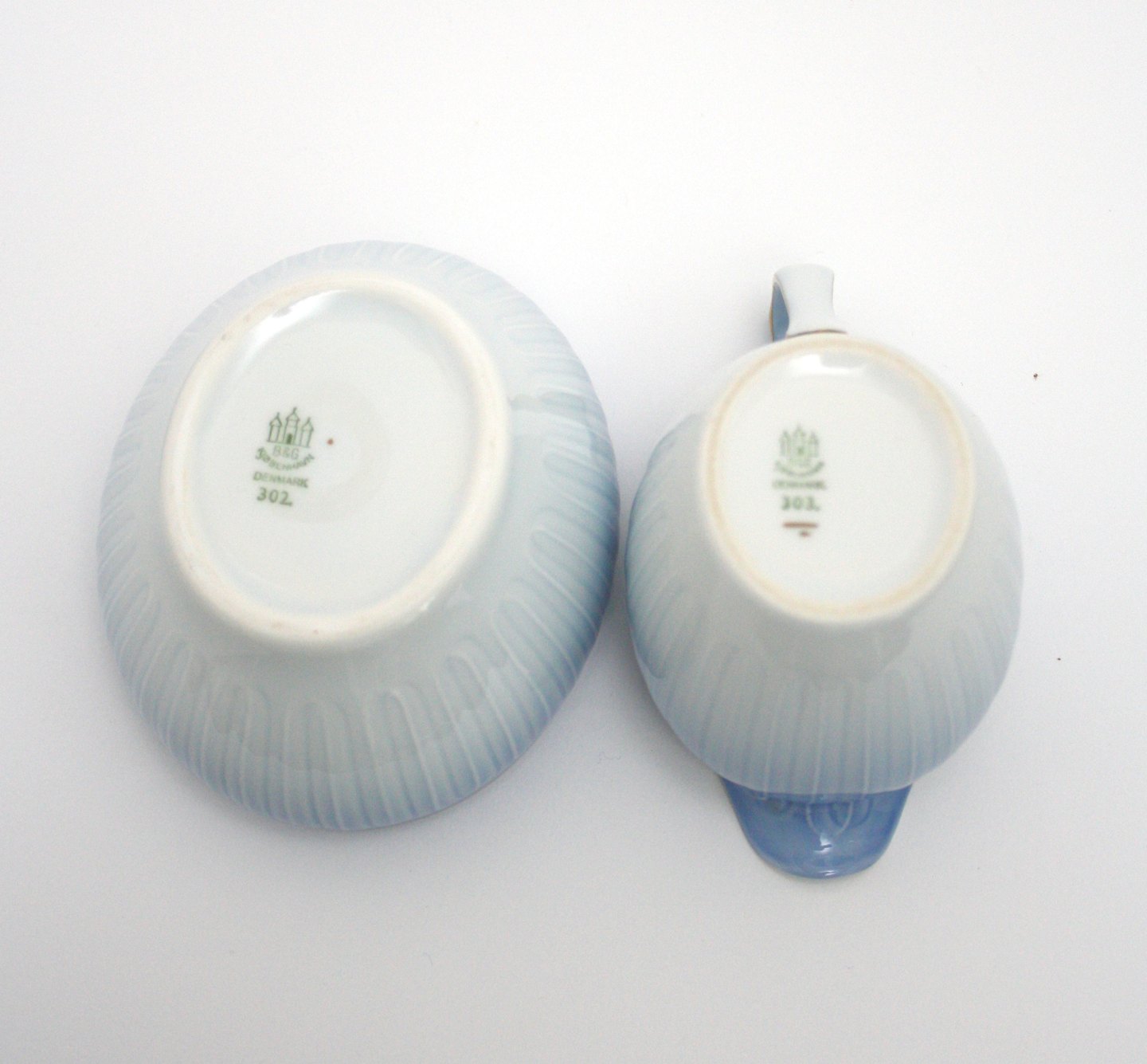 Bing & Grøndahl, Ballerina med guldkant, lyseblåt porcelæn. Sukker og Fløde sæt.
