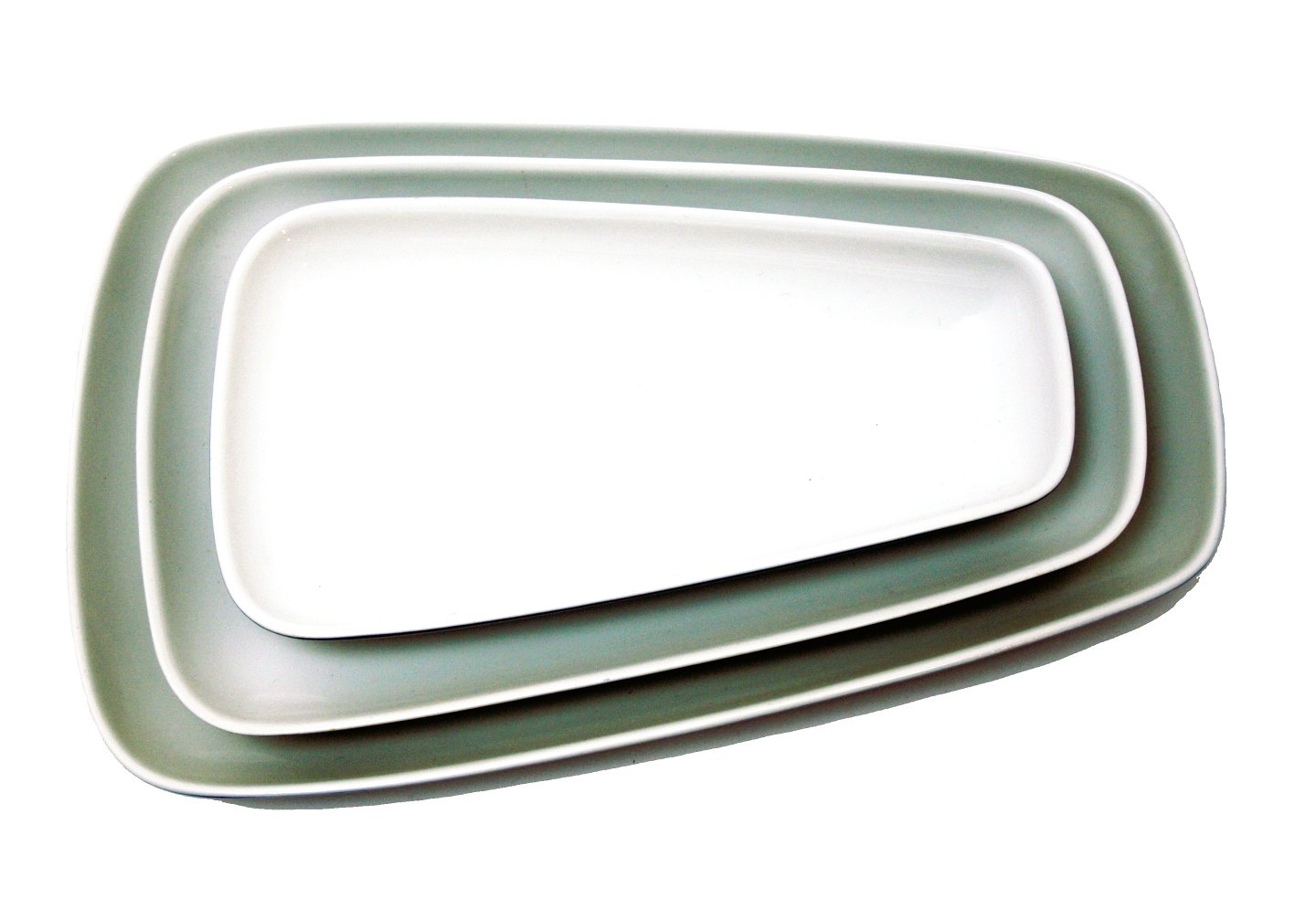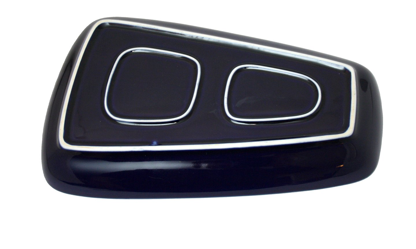 Lyngby Dan-ild glasurfarver, blå 2600. Design Axel Brüel i 1958. Ingen Lyngby mrk. i bunden. Trapezformede fade.