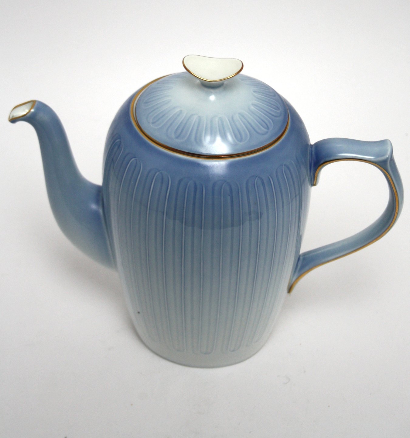 Bing & Grøndahl, Ballerina med guld, Lyseblåt porcelæn med guldkant. Kaffekande. I. sortering. Højde 20,5 cm. Nr. 301. Pris: SOLGT