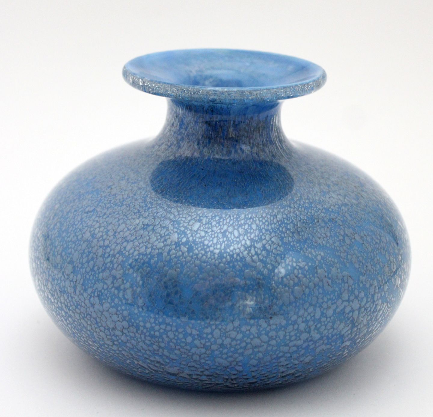 Holmegaard, Blå troldevase. Designet af Sidse Werner. Højde 11 cm. Diameter 14 cm. Signeret SW HG. Pris: 325 kr