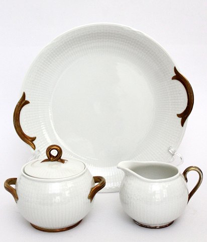 Rørstrand, Sweden, Swedish Grace med guld. Tekop med underkop. Dette stel er kun guldbelagt på ører/hanke, nederst på kop og inderste kant på underkop. Designet af Louise Adelborg (1915-1971) i 1930, som det store nationale servicestel. Grace stellet produceres endnu. Højde 6 cm. Øverste diameter 9,5 cm. Underkop diameter 14,5 cm. Fin stand, lidt slitage på guld på underkopper kan forekomme. Pris: 90 kr. stk. Lager: 7