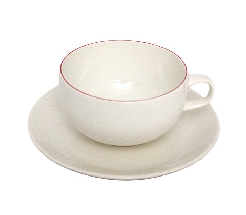 Royal Copenhagen, Rødtop. Boullionkop med underkop uden låg. Rød kant på kop cremehvid underkop. Designet af Grethe Meyer.