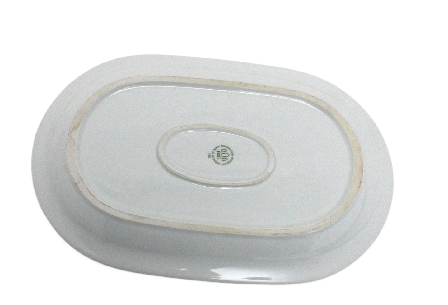 Bing & Grøndahl, Serveringsfad. Nr. 315. Designet af Martin Hunt. Længde 36 cm. Bredde 23 cm. II sortering. Almindelig brugsslid, brugsstreger. Pris: 400 kr. stk. Lager: 1