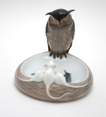 Fad/skål med ugle og 3 mus, Royal Copenhagen