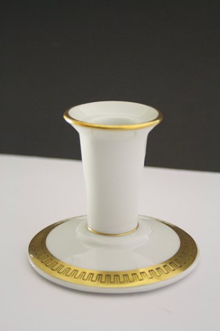 Lyngby porcelæn. Trend nr. 450. Hvidt med græsk inspireret guldbort. Dyb Tallerken. Diameter 21 cm. Pris: 75 kr. stk. Lager: 8