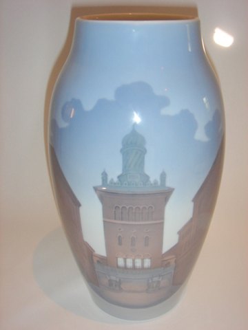 Vase med motiv fra Carlsberg, Bing & Grøndahl, dek. nr. 1302/6243, højde 25 cm, 1. sortering, diameter øverst 8 cm.