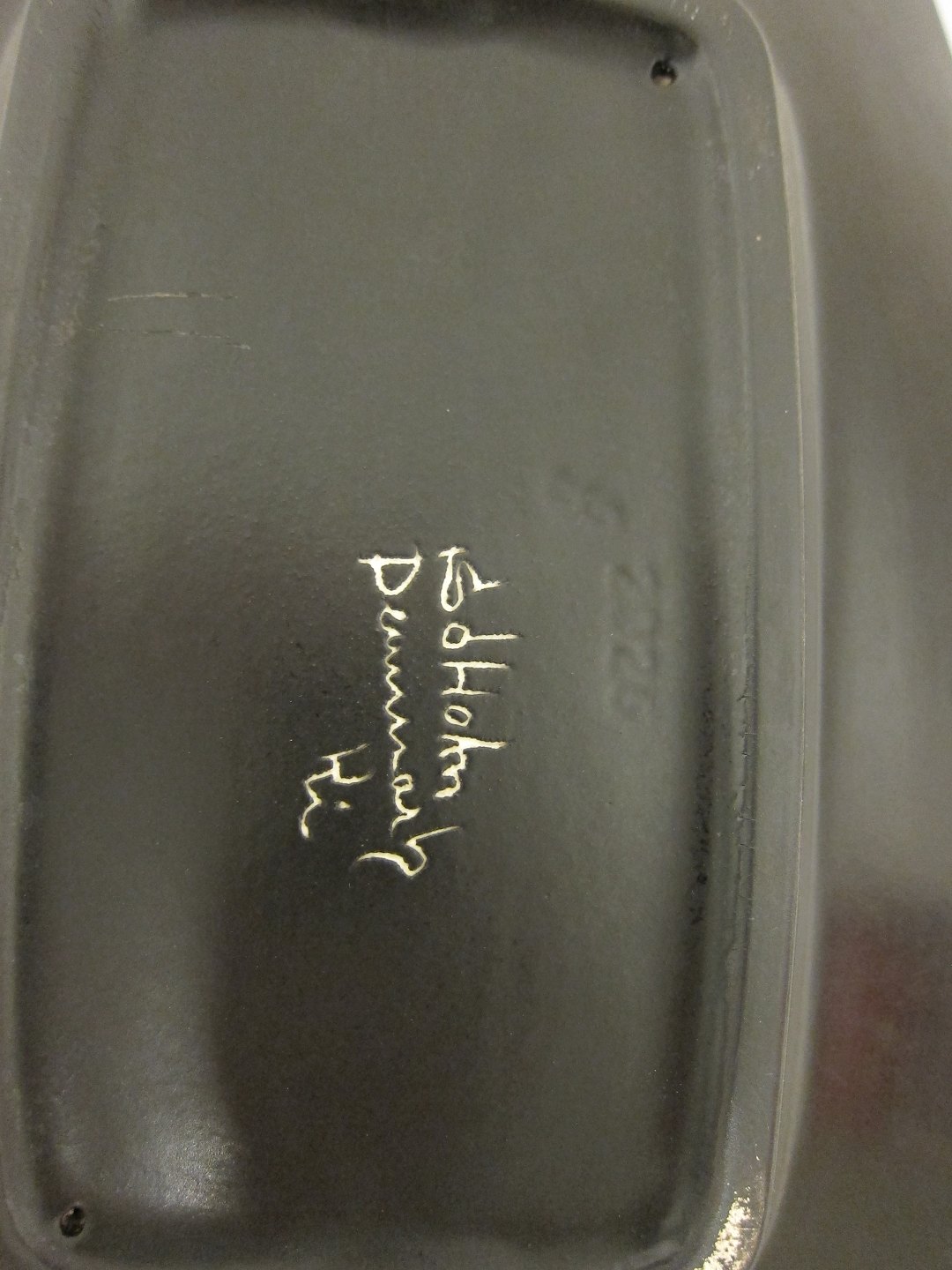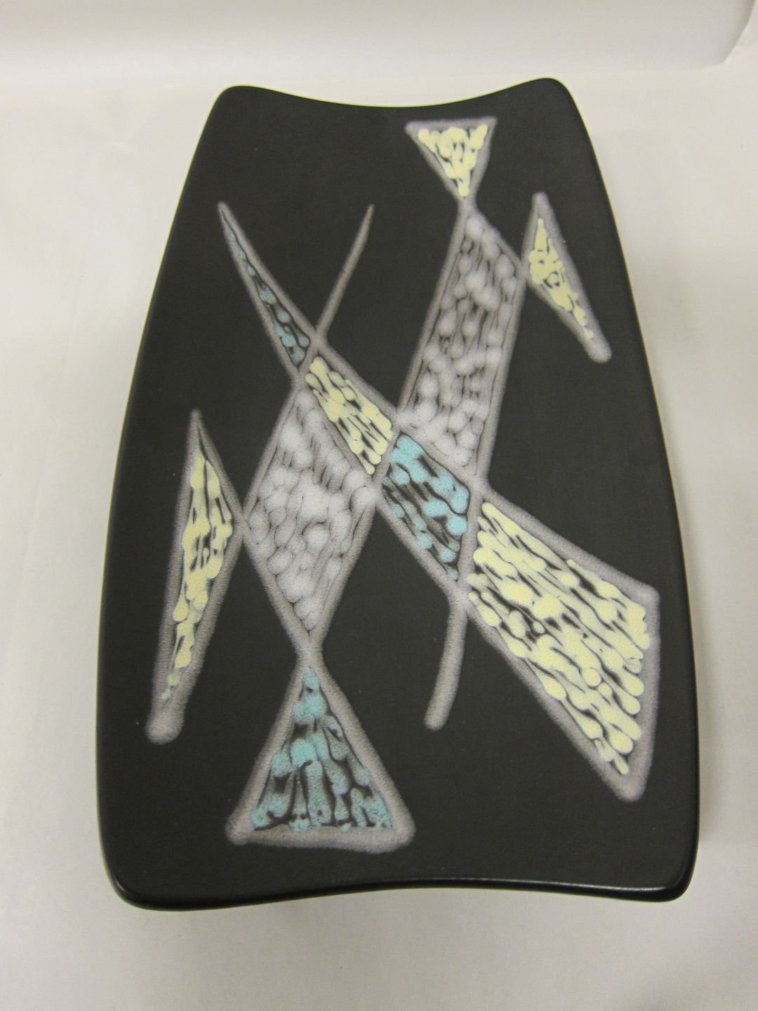 Dish, pottery, from Søholm, Burgundia Dish from 1956 Shape: Holm Sørensen Glaze and og decoration: Sven Åge Jensen L: 40cm, W: 24,5cm Please note: Little defect (Please see the photo) Articlenr.: 41121