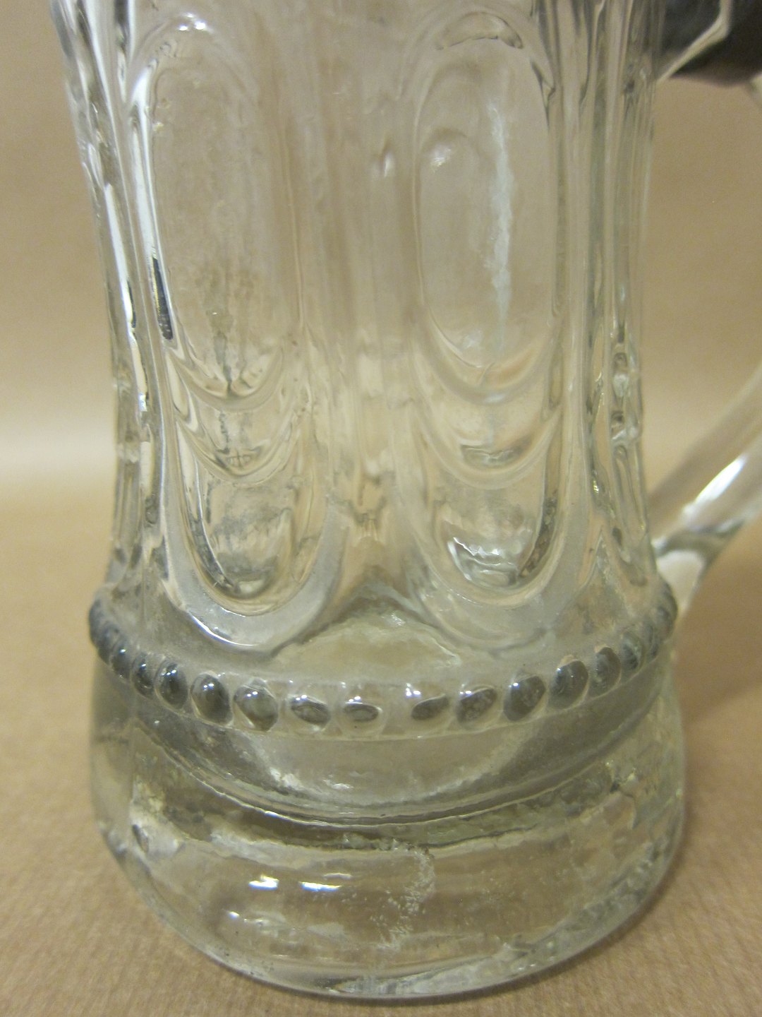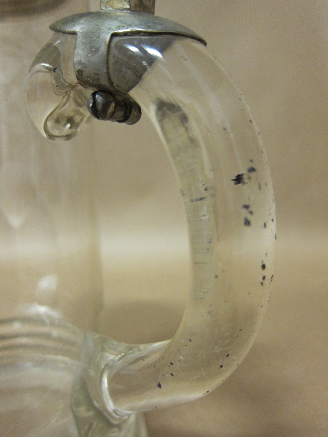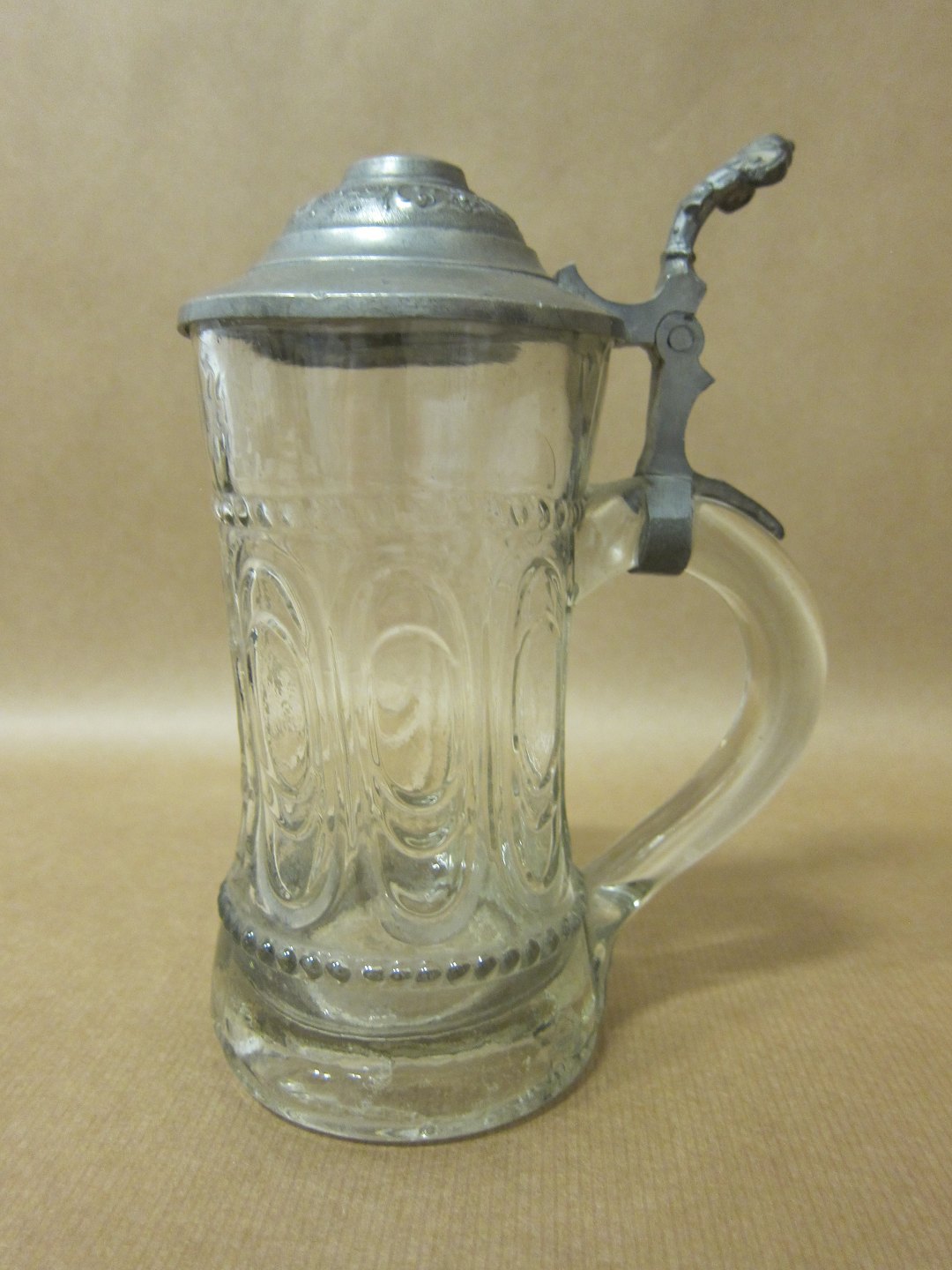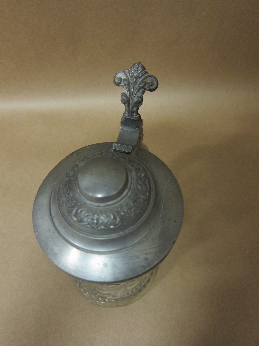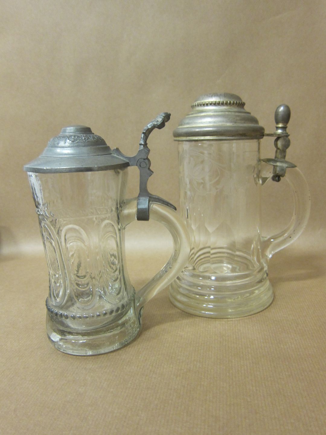 Mug/tankard, glass, with a lid made of pewter Dkr. 425,- each H.: 17,5cm (left) og 19,5cm (right) We have a large choice of antique glass Please contact us for further information Articlenr.: 1192