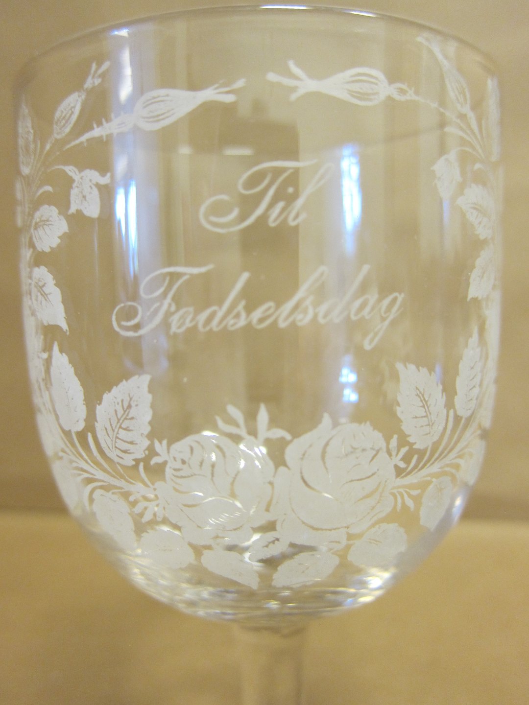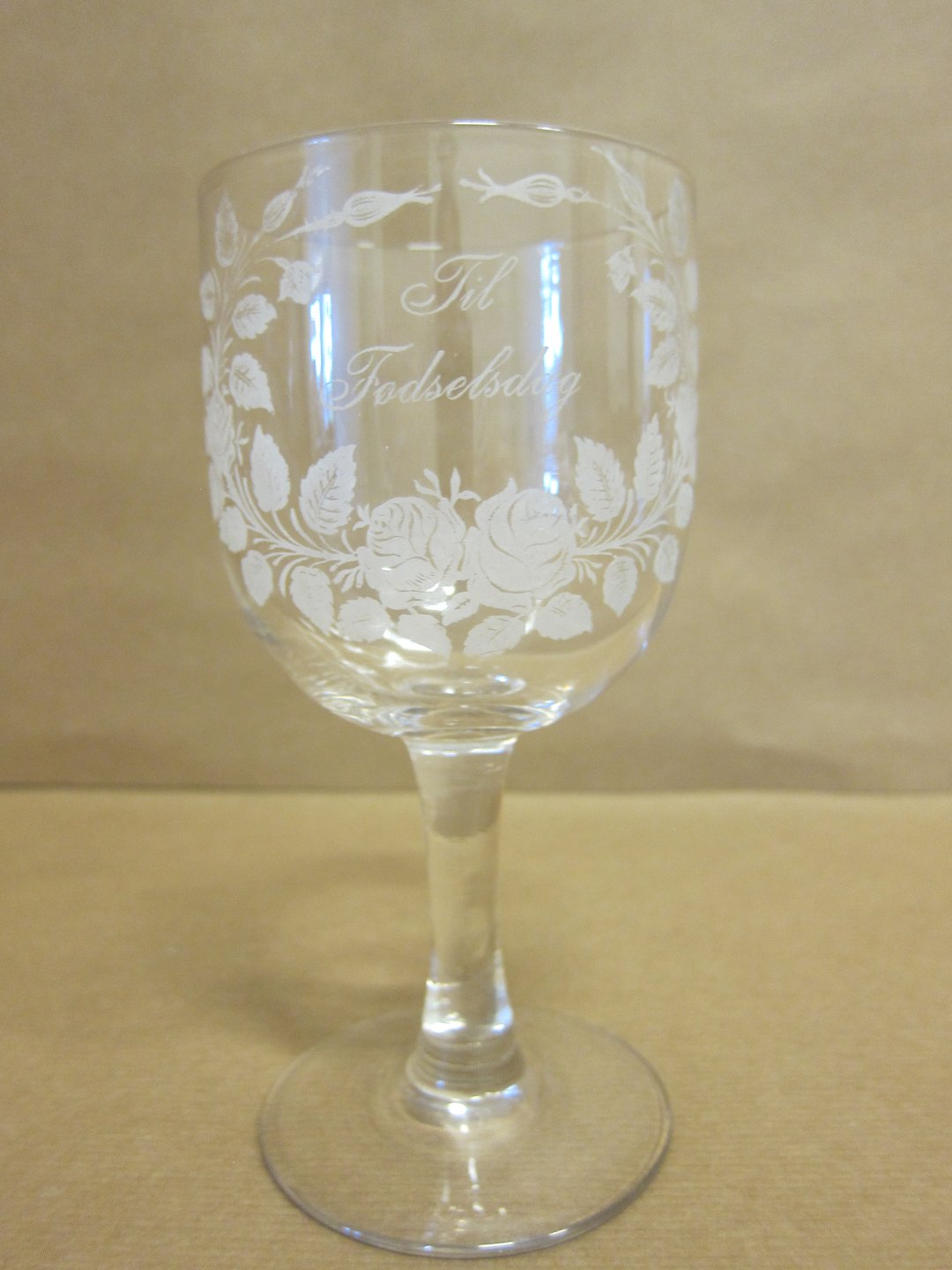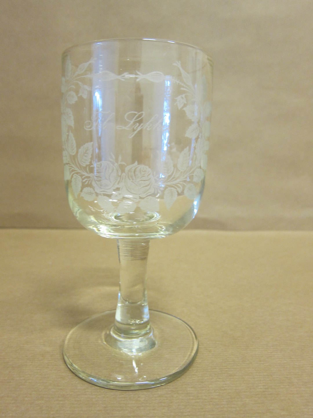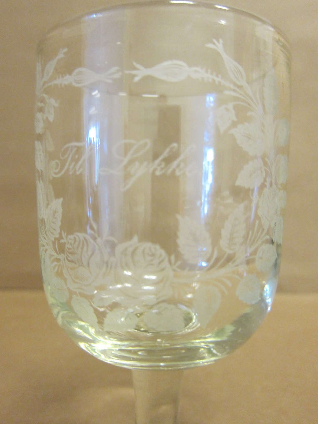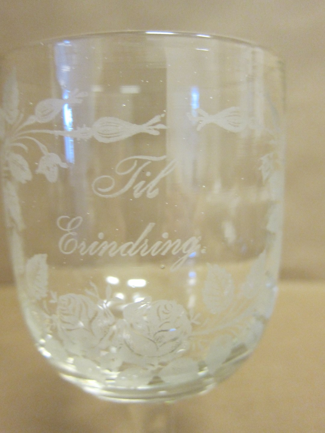 Erindringsglas, ca. 1910, med ætset dekoration