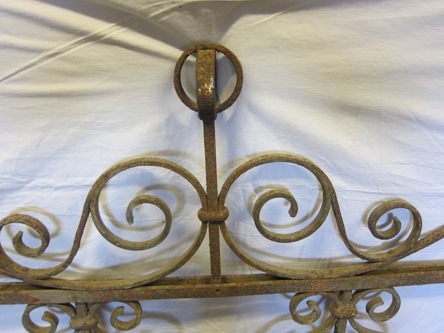 Gate made of wrought iron, about 1900 H: 118 L: 118cm (without furniture), 129cm (with furniture) Fine patina For the garden or for decoration in your home Articleno.: 23315