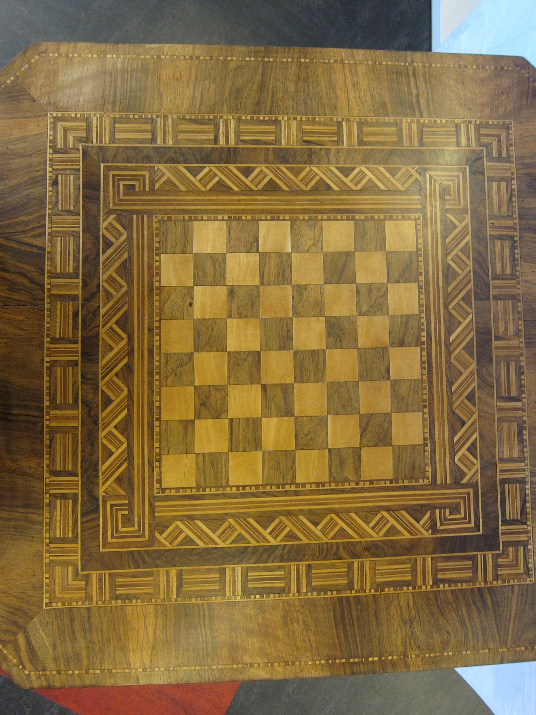 Chess table made of Brazilian rosewood with intarsia made of birch- and walnut