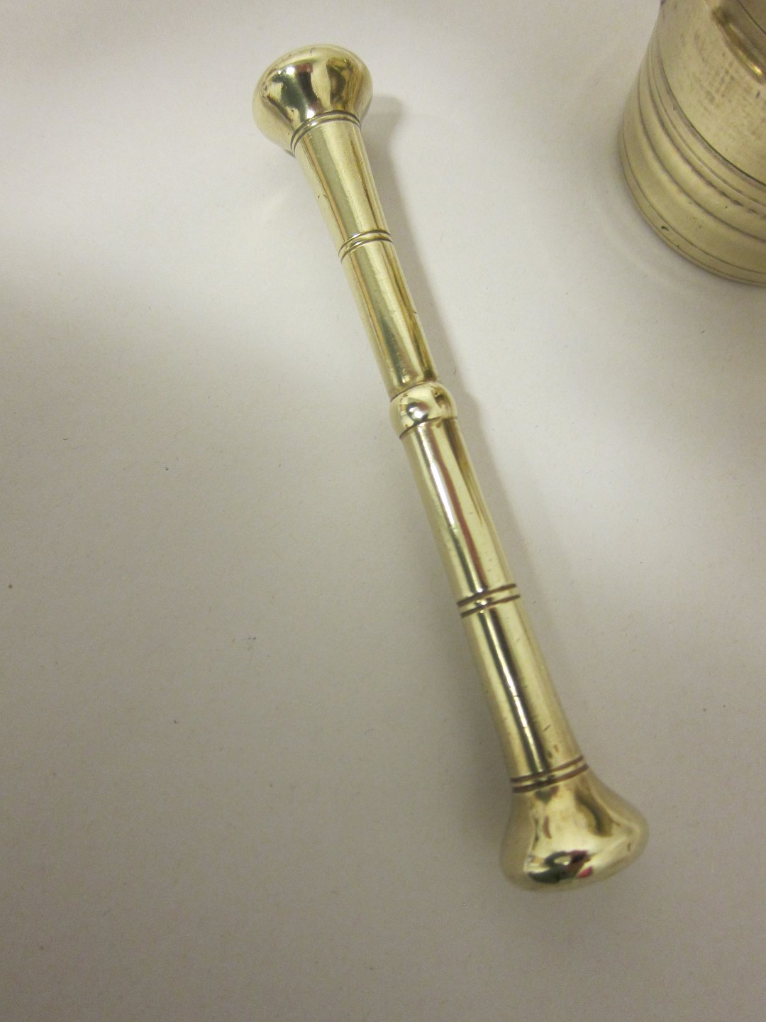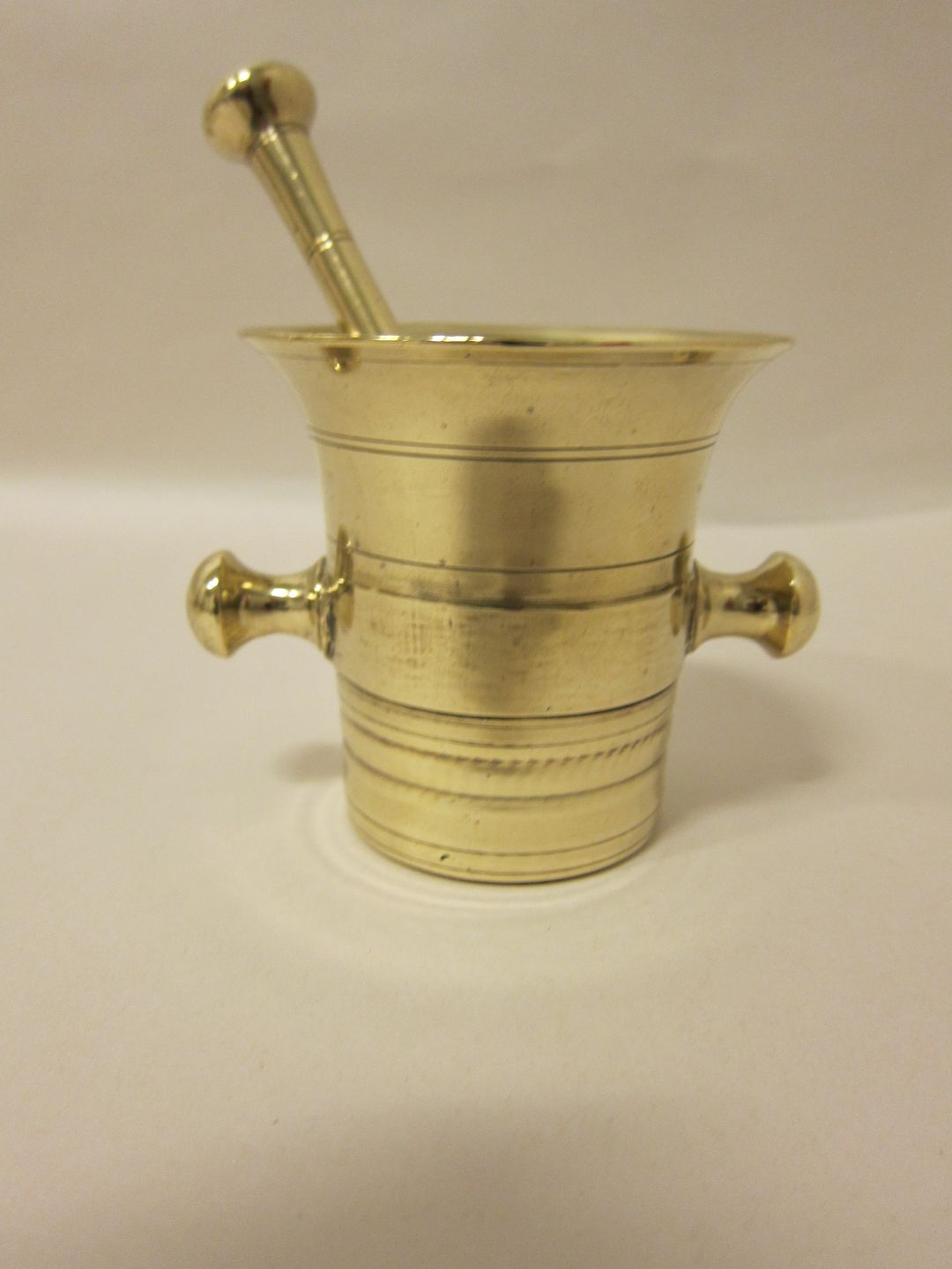 Mortar made of brass Mortar with a pestle From the 1800's H: 9cm Articleno.: 1006