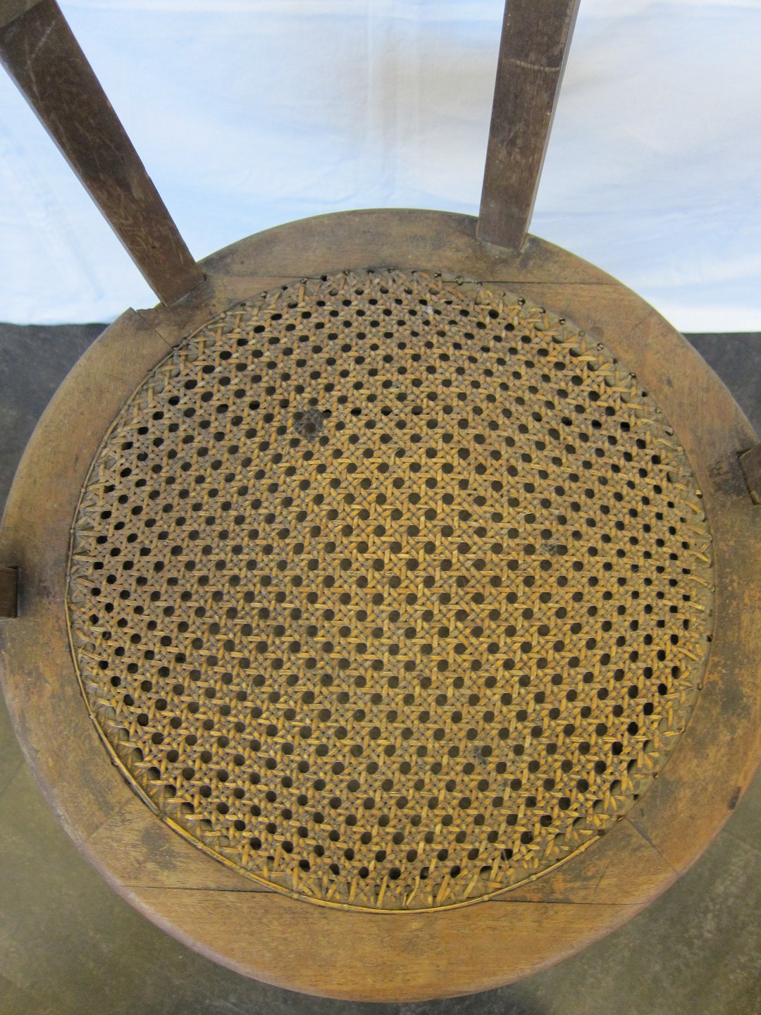 Antique chair from a child hairdresser with a seat made of canework