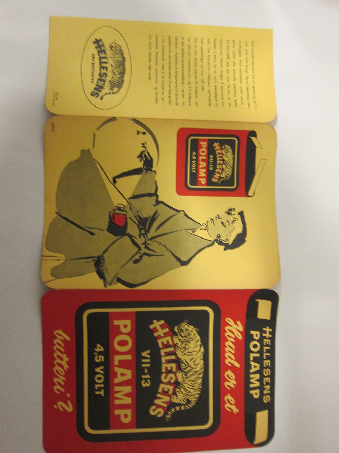Hellesens 3-fløjet reklameskilt og Osram el-pærer