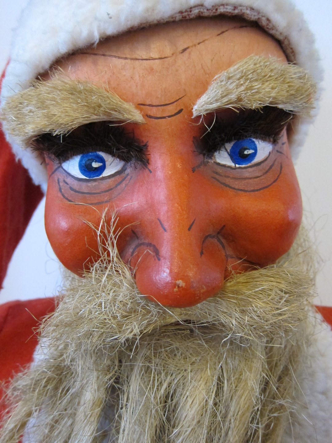 Julemanden er fremstillet i bemalet papmache og ståltrådsbeklædt træ med nissetøj og træsko