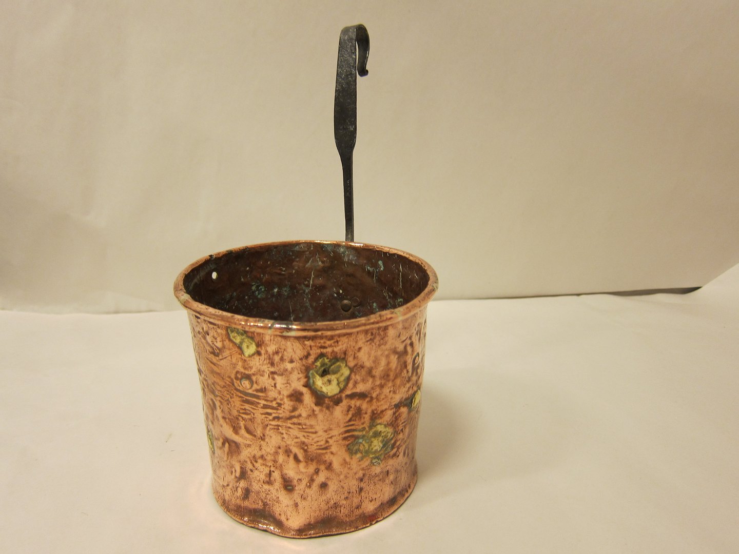 Kobber opøser Antik opøser af kobber med reparationer af messing Fra ca. 1800 H inkl. hank: 27cm "Koppens" højde: 13cm, diam: 14,5cm Varenr.: 41313