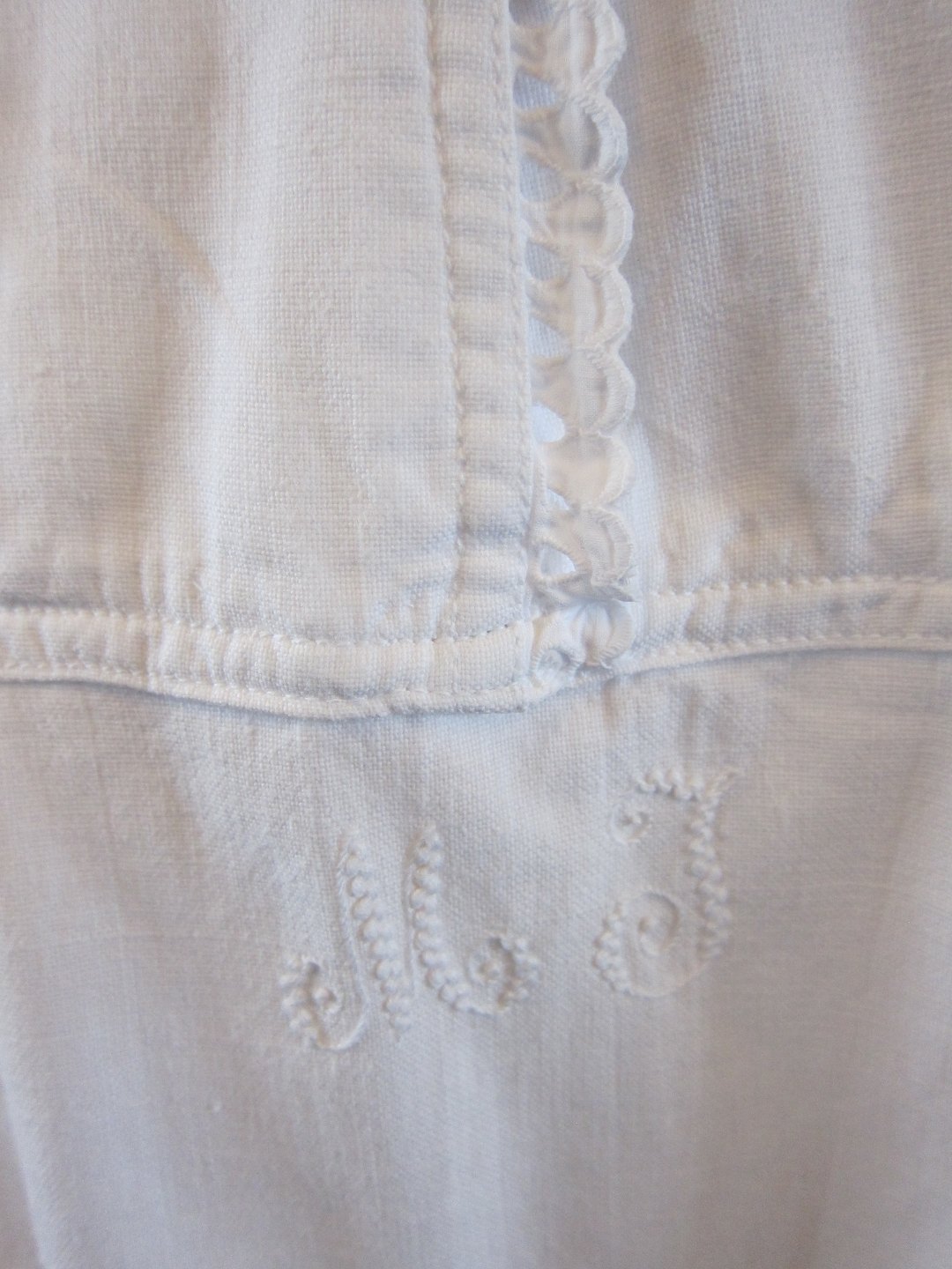 An old shift with the beautiful emboidery hand made of monogram, gusset in the seam in the side and under the arms etc.