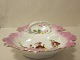 Utrolig dekorativt antikt fad, som er 2-delt med en meget smukt formet hank. Se de smukke dekorationer