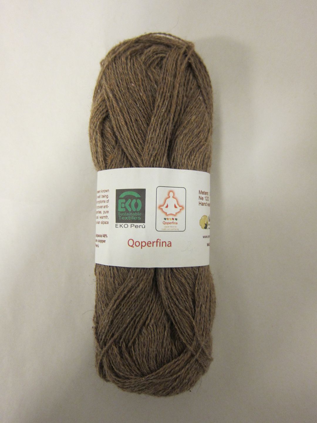 Qoperfina er et 100% naturprodukt fra Peru, som består af økologiske bomuldsfibre og alpakafibre blandet med naturlig kobber. Den særlige kombination giver et ualmindeligt blødt og slidstærkt garn.