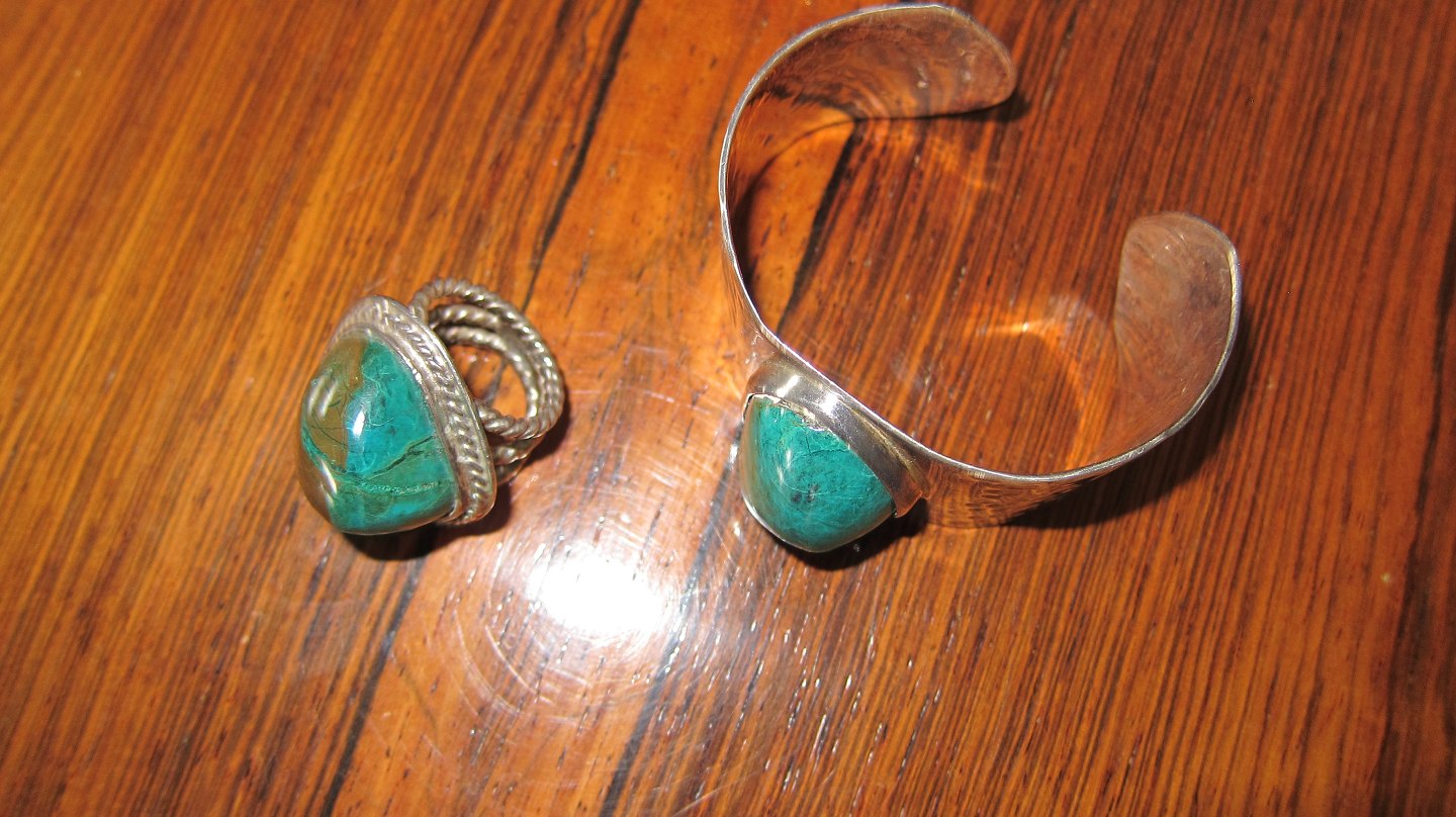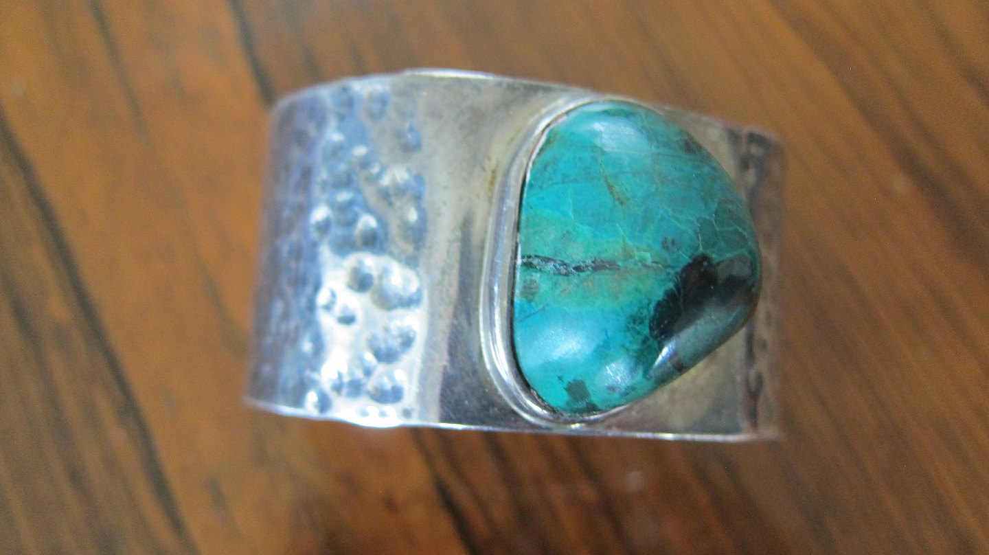 Arm ring made of "hammer stroken" silver with a beautiful green stone ,- a very beautiful and personable arm ring / Bracelet