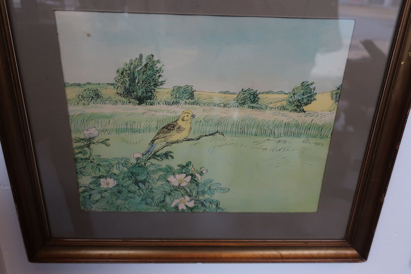 Lithograph, coloured Yellowhammer By Johannes Larsen (1867-1961) Signed About 1930 In the old frame In a good condition Articleno.: 2-41472