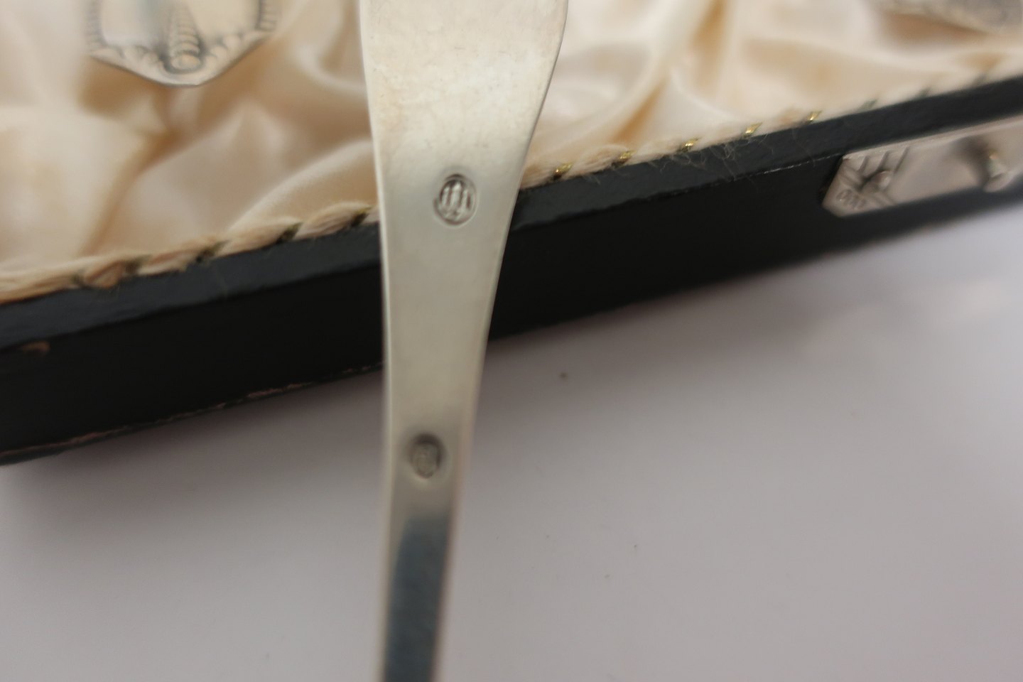 Teskeer af sølv i original æske