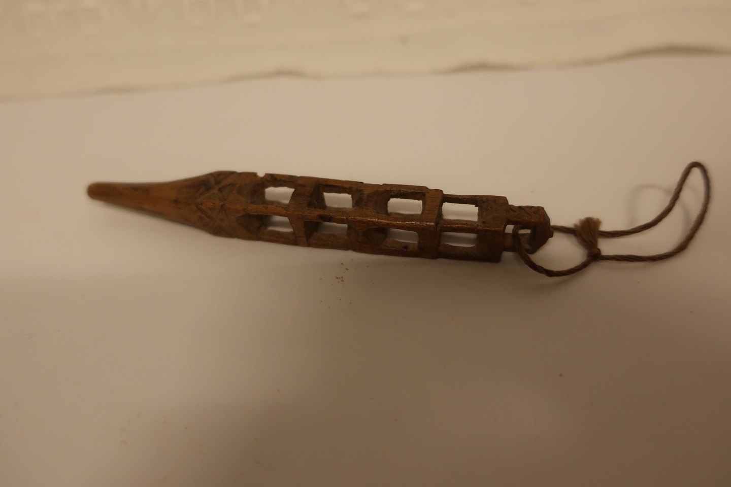 This antique tool is for winding thread or - as it is so short to hold - a stiletto made of wood