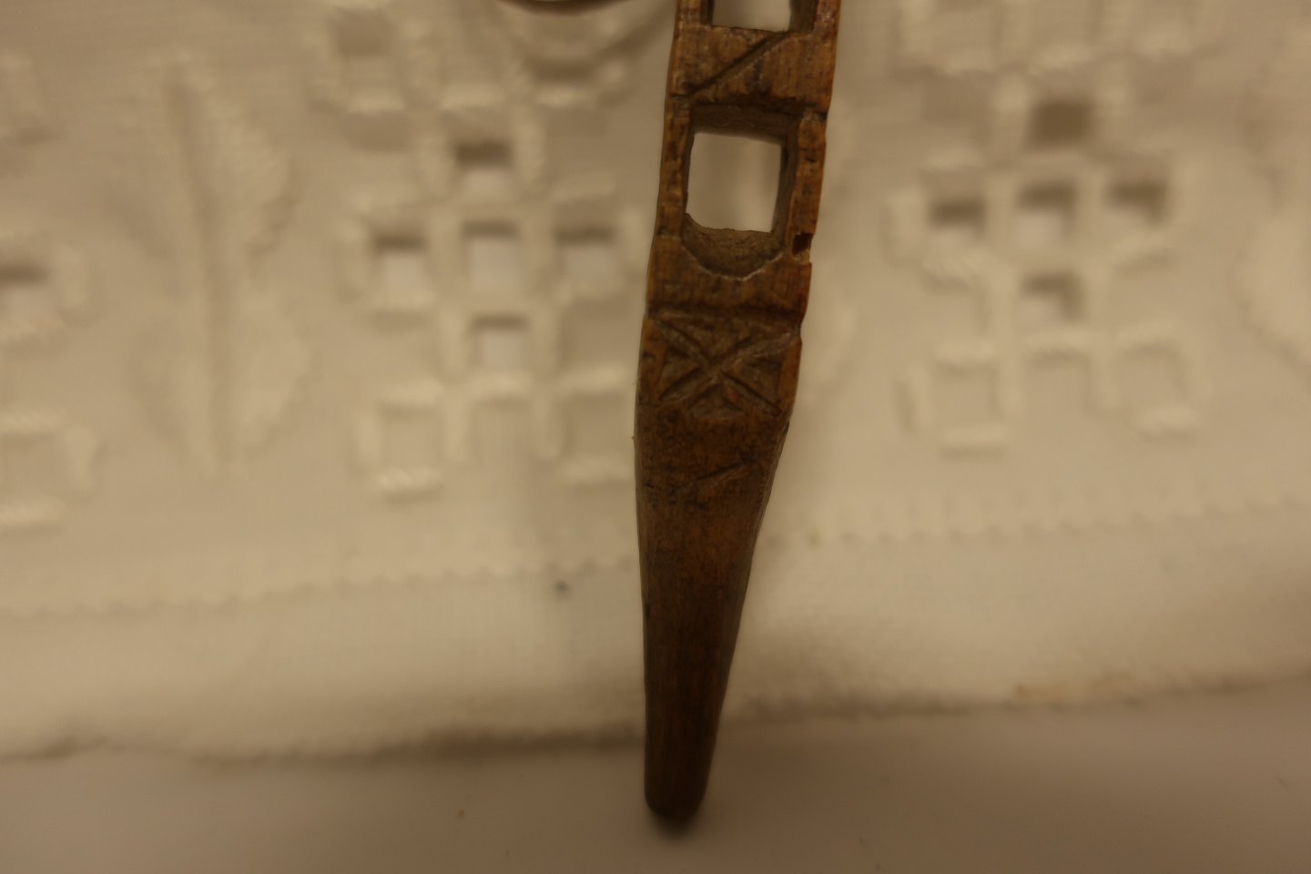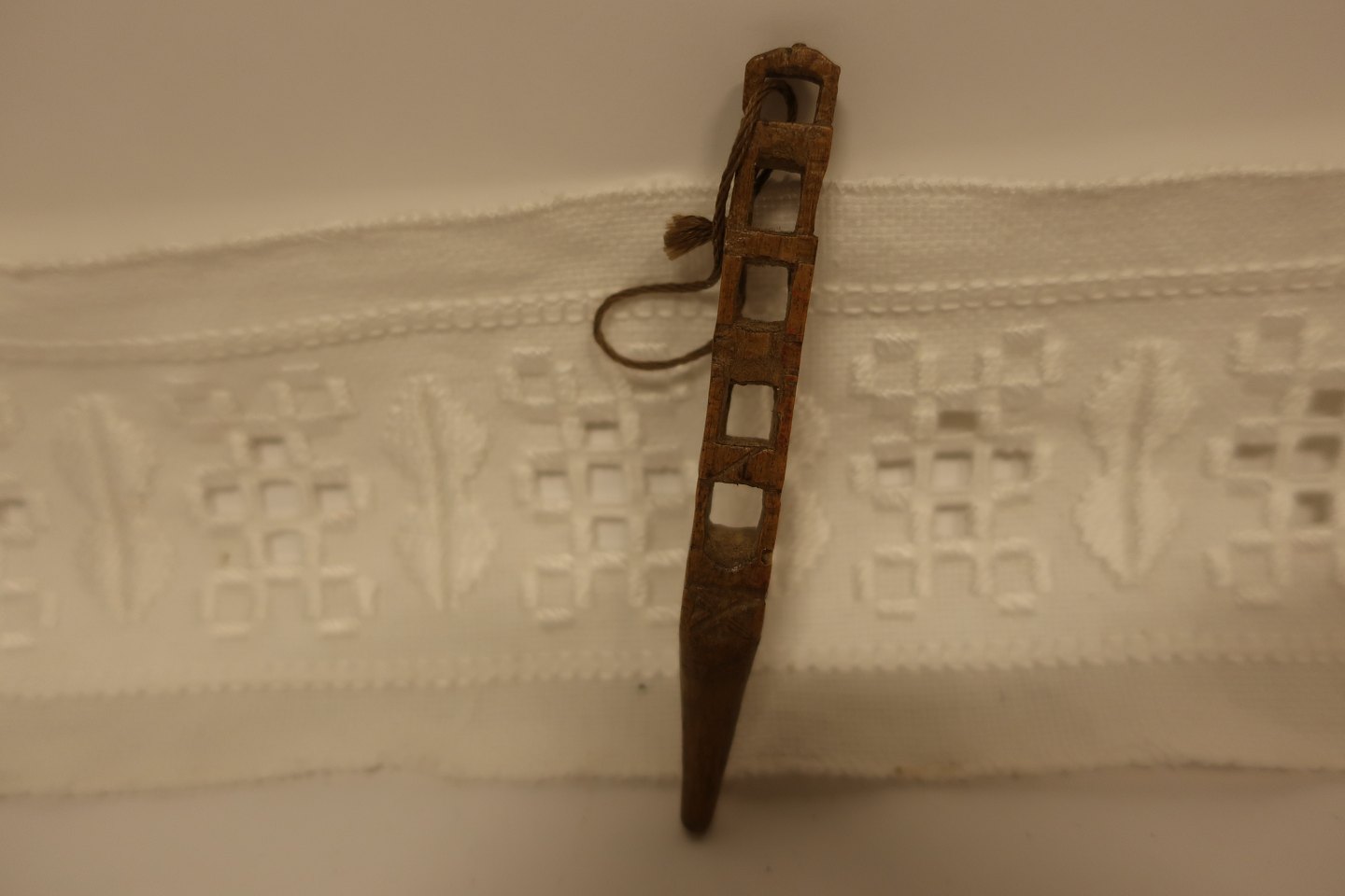 This antique tool is for winding thread or - as it is so short to hold a stiletto - made of wood