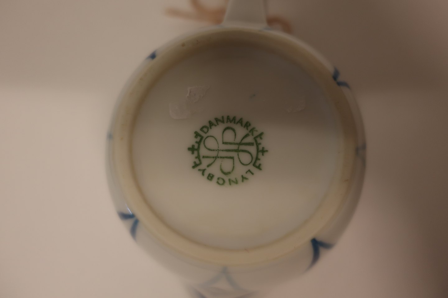 Lyngby - Danild 40 Harlekin - / Blå Flamme mønster Flødekande og sukkerskål som sæt Blev produceret fra 1958 Flødekande mål: ca. 5 x 12 x 7 cm Prisen er for et sæt Varenr.: 4-310103