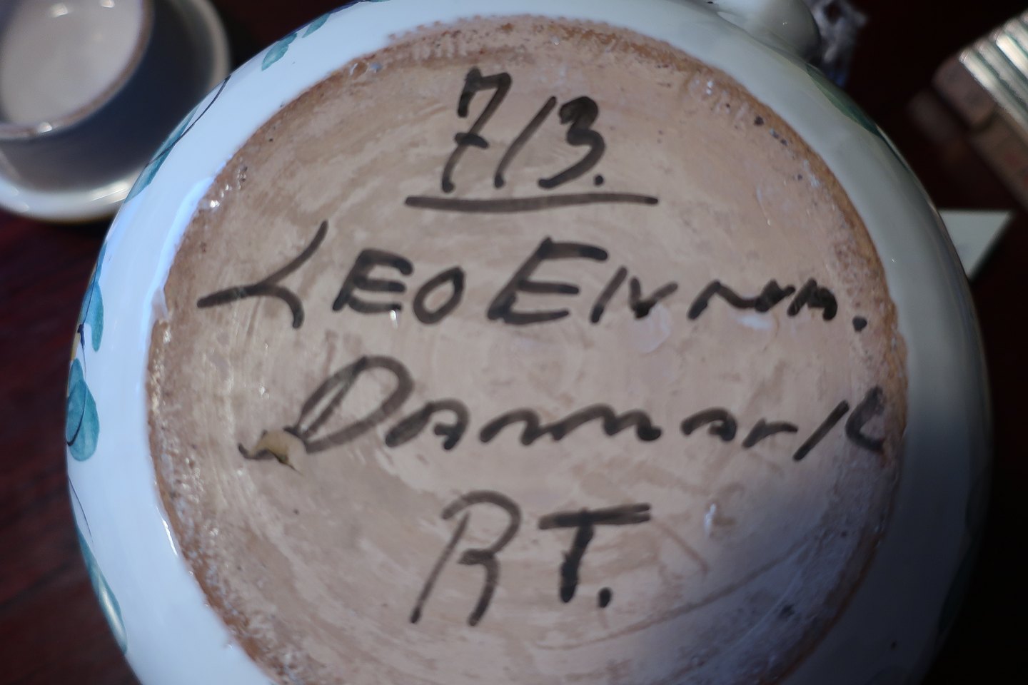 Tepotte/tekande af keramik Kunstner: Leo Enna Modelnr.: 713 Signeret: 713, Leo Enna, Danmark, RT. Flot stand Varenr.: 4-02932