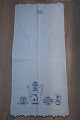 Smukt gammelt paradestykke med blåt håndbroderi og initialer