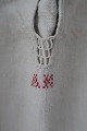 Særken er håndsyet og med håndbroderede knapper og håndbroderede initialer og forstærkninger over skuldrene