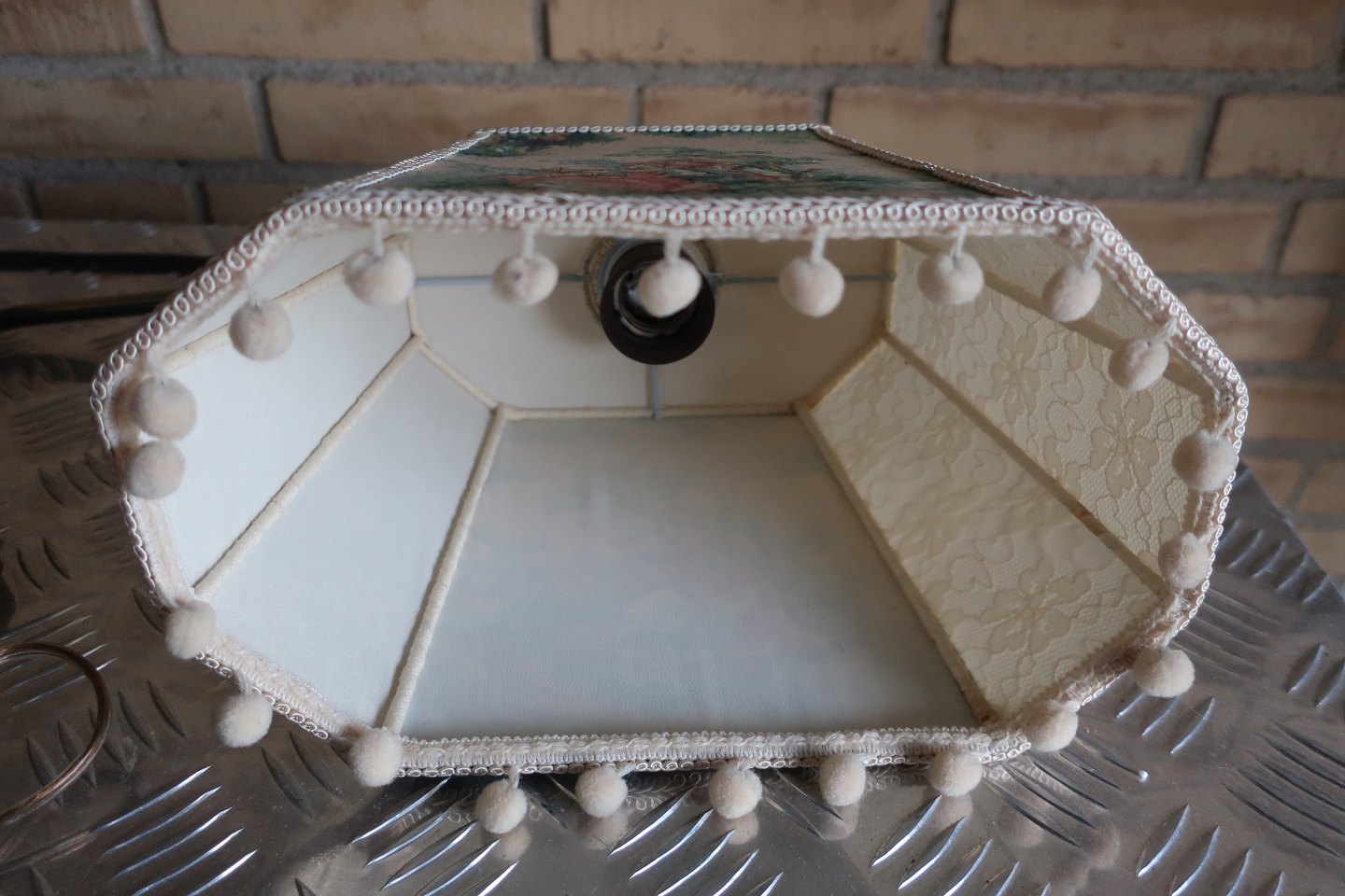 Vintage lamp for the wall, brass, with the original shade with a beautiful motiv