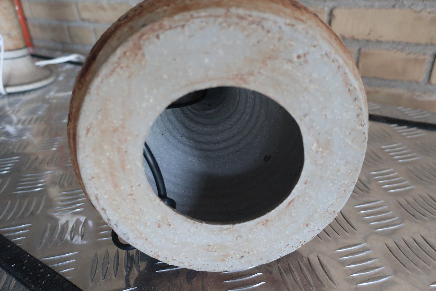 Retro bordlampe, keramik med smuk dekoration Mærke: Ukendt Sjælden H: 34cm u/skærmholder Prisen er inkl. skærmholder God stand Varenr.: SKA