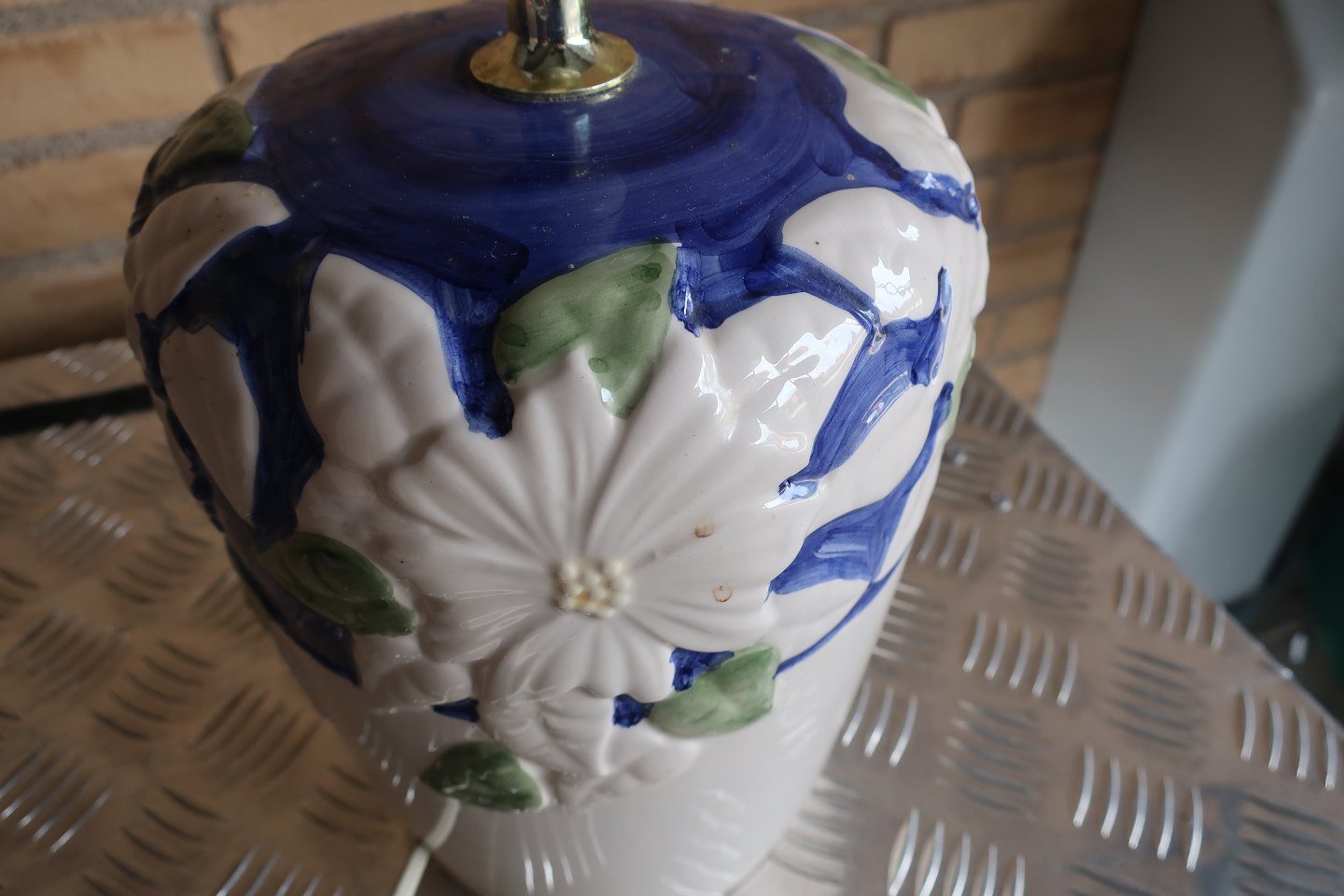Vintage Table lamp Beautiful decoration, blue and green, with flowers H. 32cm In a good condition Articleno.: SKA