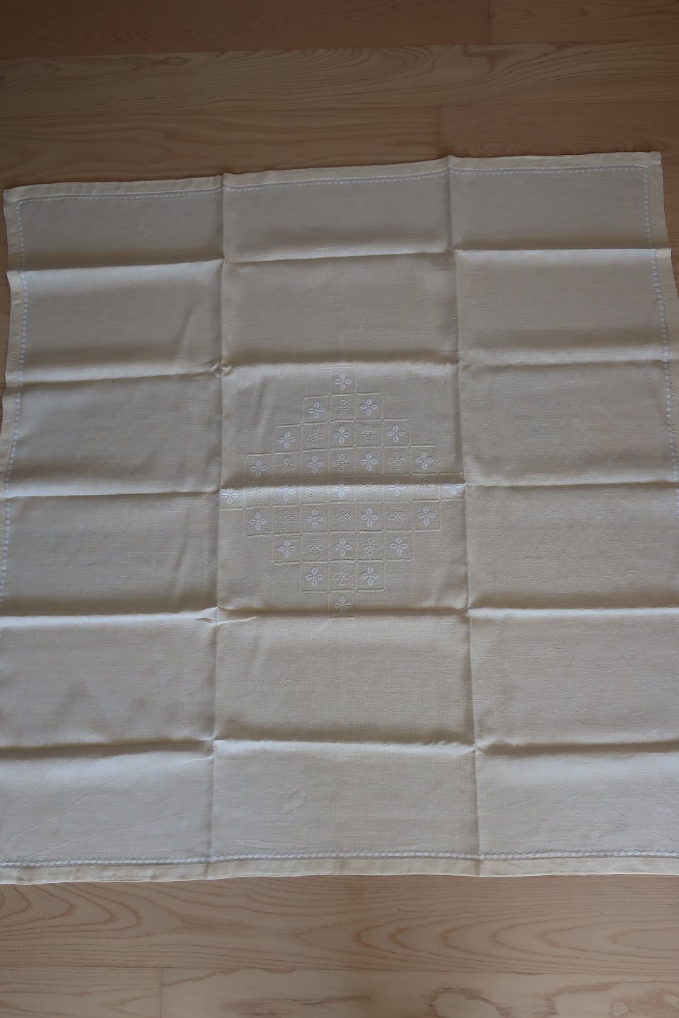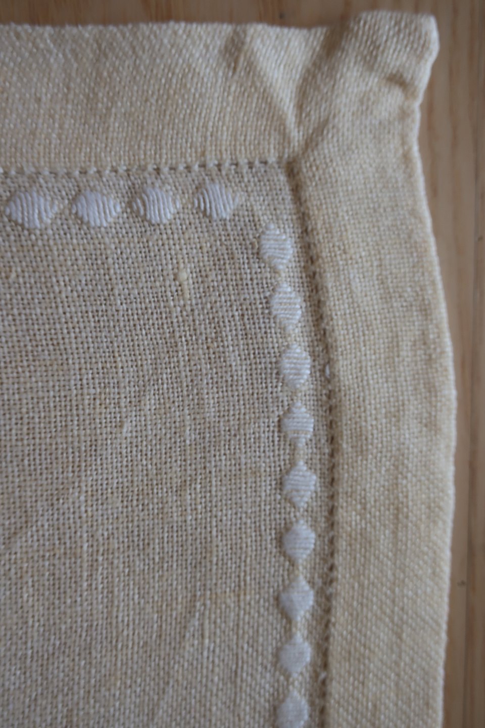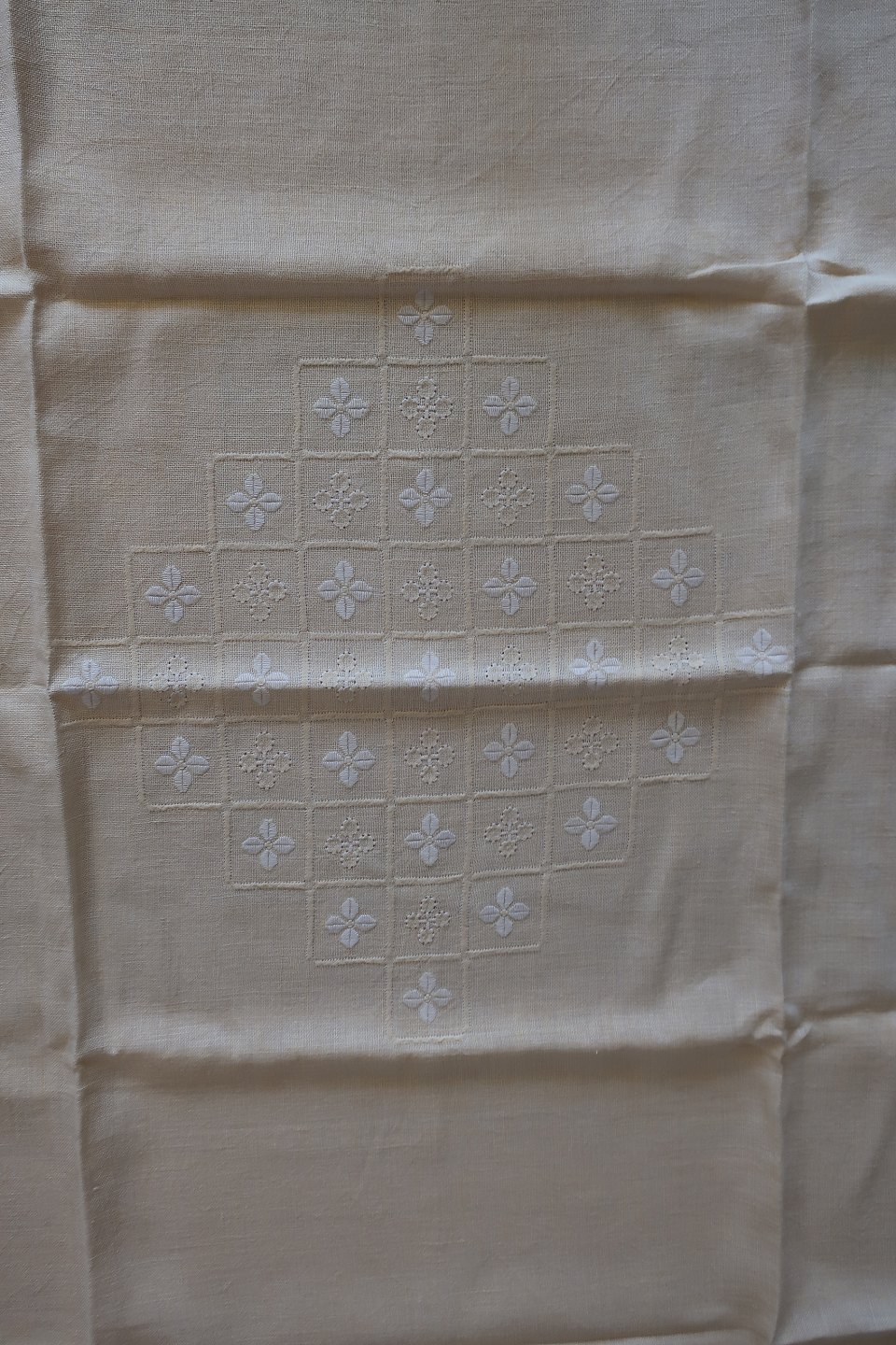 Gammel dug af hør Håndbroderet med hvidt broderi