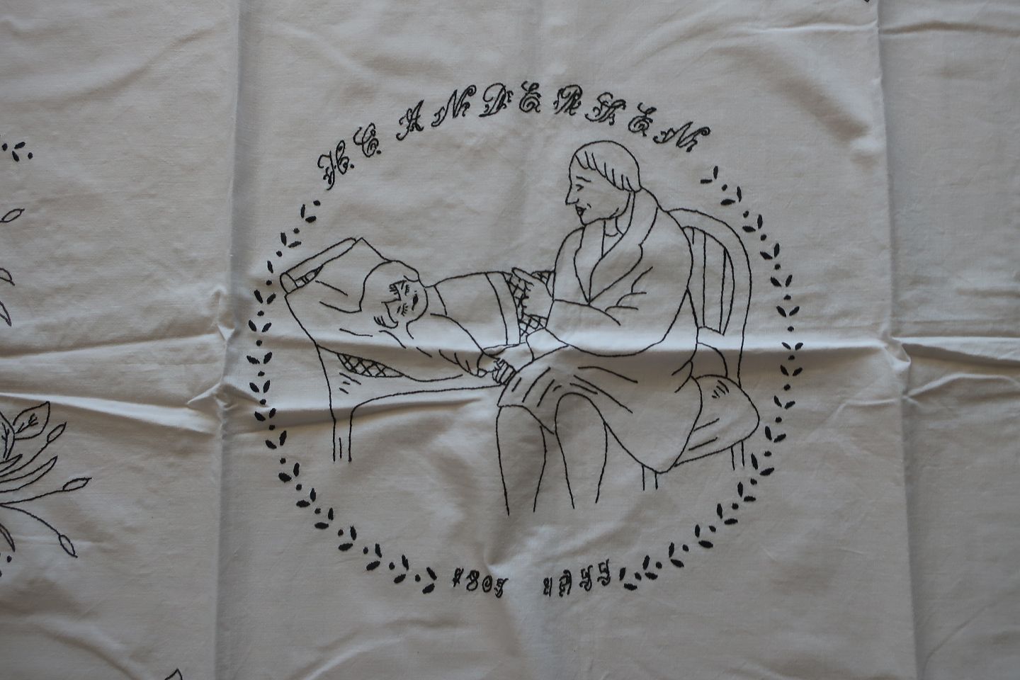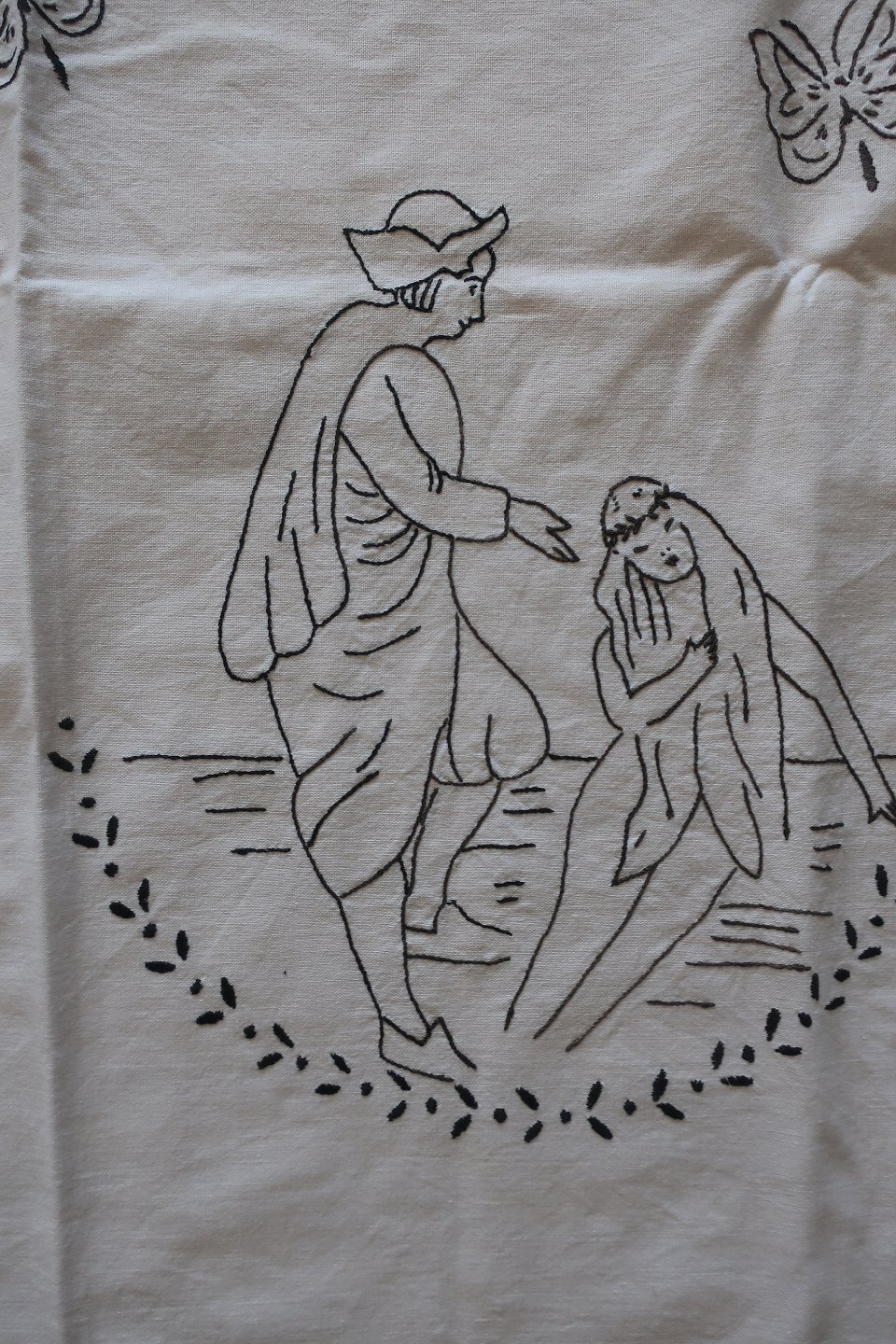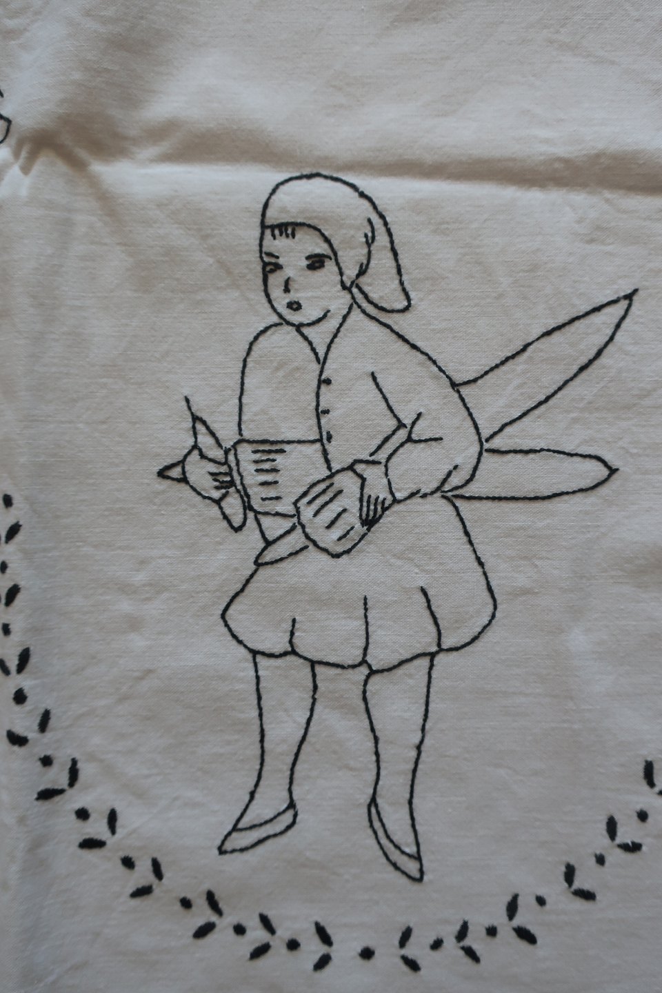 Håndbroderet med farvet broderi