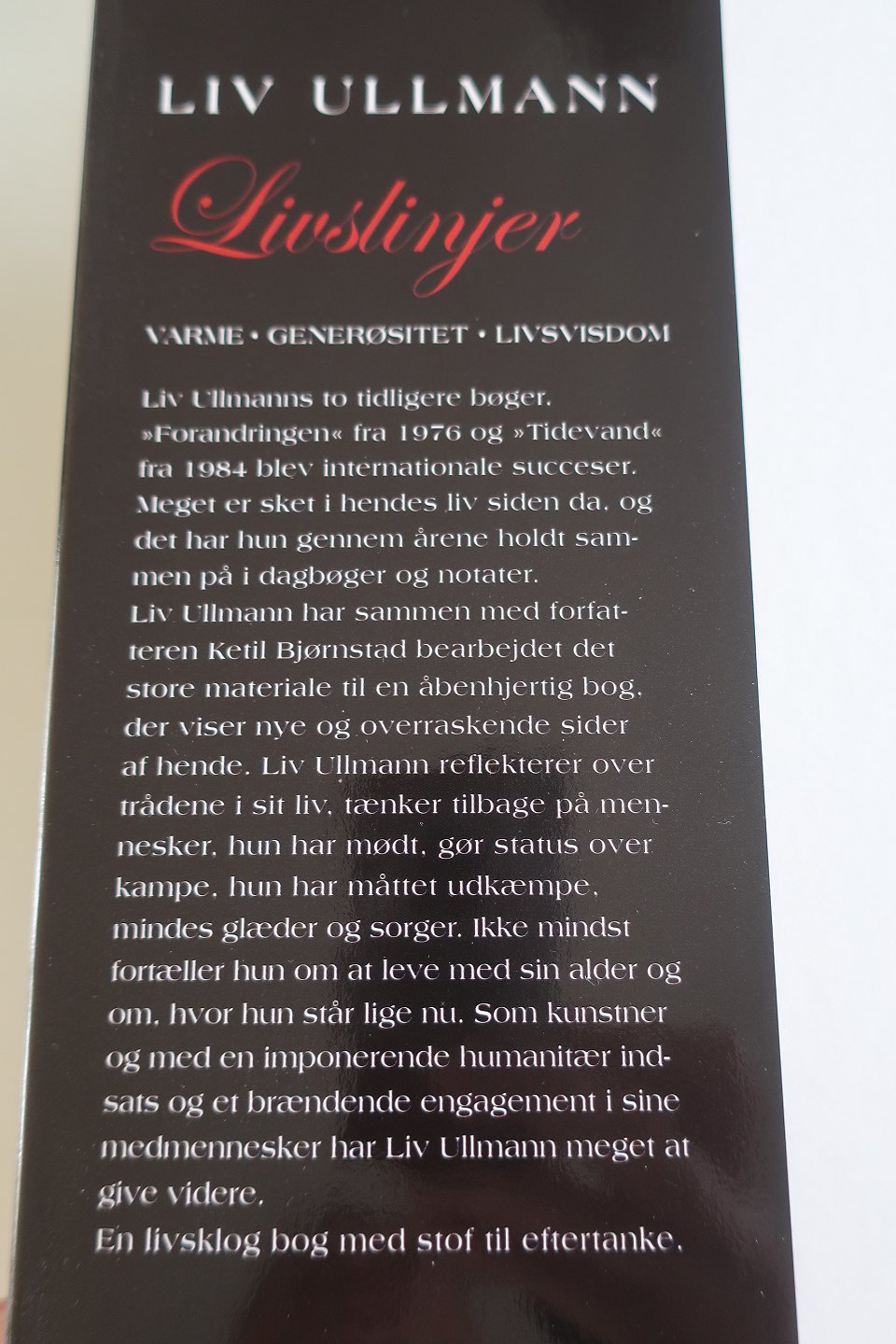 Livslinjer Af Ketil Bjórnstad Om Liv Ullmann På dansk ved Sara Koch Forlag Gyldendals Bogklubber 2006 Sideantal 303 God stand Varenr.: R5HY6-KL5